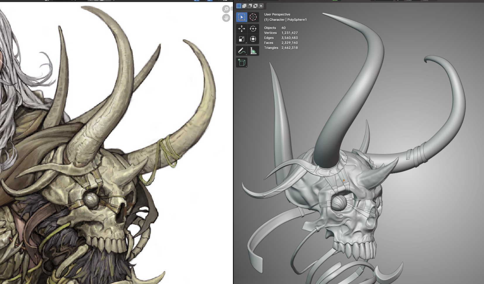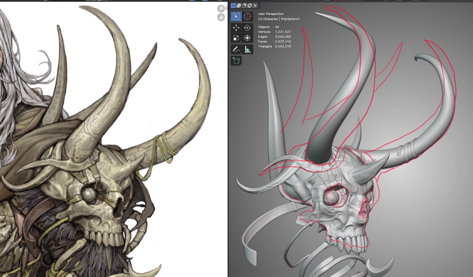 >>328724 И да, про то что не понимаешь что делаешь. Пишешь про хай, лоу, но на скринах хуй пойми что, какая-то мешанина из непонятной геометрии, одна деталь так сделана, другая сяк, череп немного проскульпчен, а рога нет, одни волосы хай, другие лоу... короче пиздец.