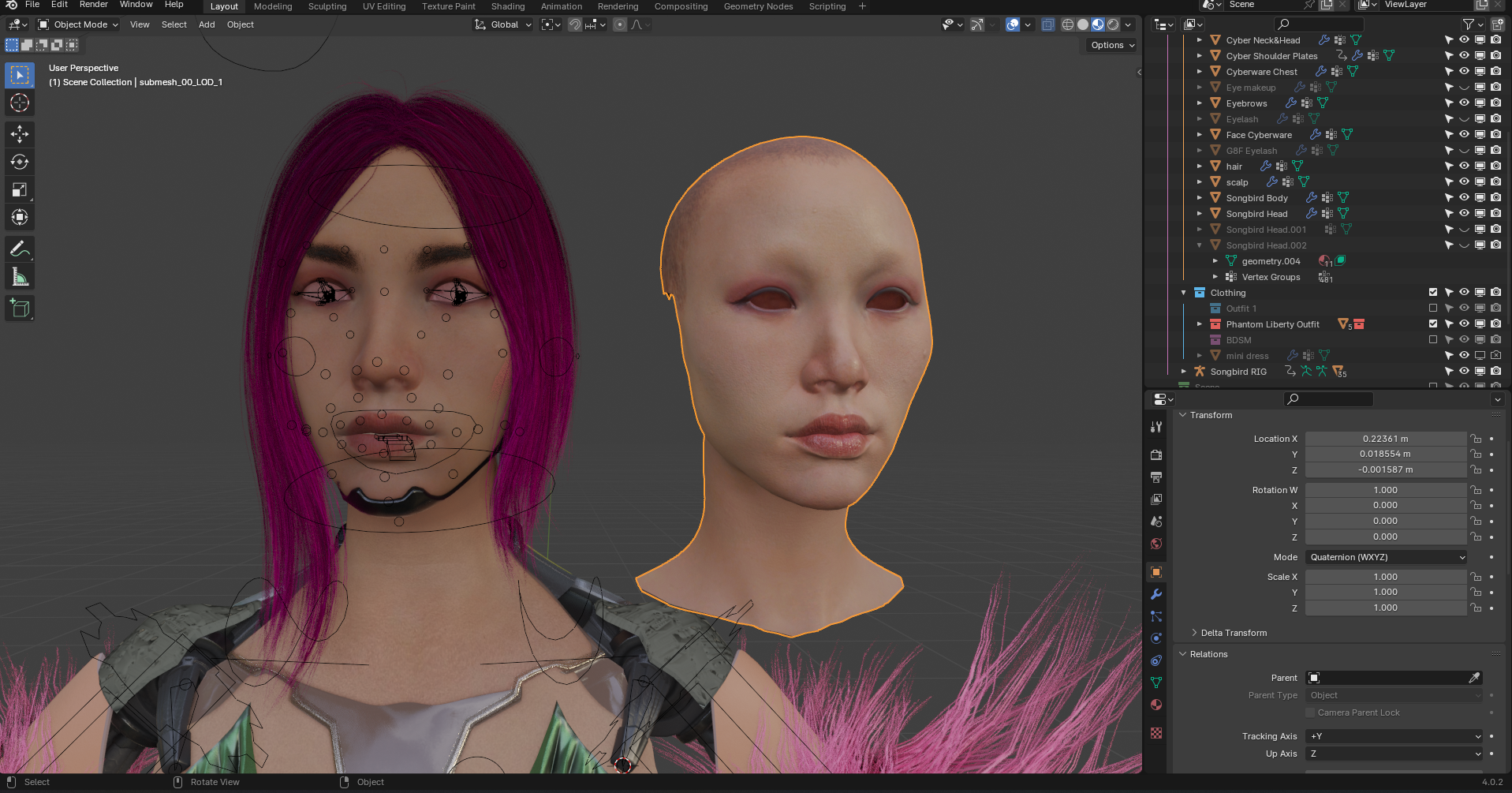 Всем добрый вечер! скачал я значит рипнутую чуваком модельку из киберпанка и вот долгое время наблюдаю - чтото ебасос не очень похож на ориг из игры, посему рипнув сам из игры модельку лица (на пике справа) узрел что автор пидорас и хуесос поменял на свой вкус.