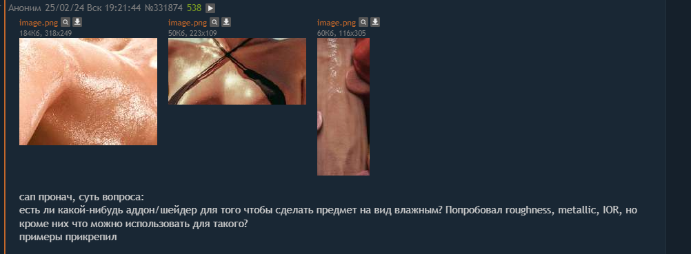 >>331896 > Чтобы пот красиво блестел, тебе нужен правильно выставленный свет. Что-бы блестело красиво можно сделать блеск фейковым, который на лампы не реагирует. Иногда так сильно проще получается.