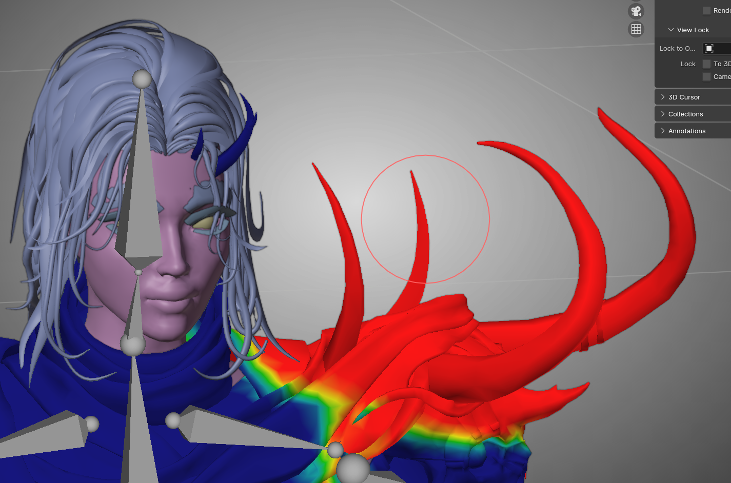 >>332321 Мои действия вообще не имеют логических последствий. Вот я обмазал все красным. Кручу башкой. Все двигается а один рог не двигается.
