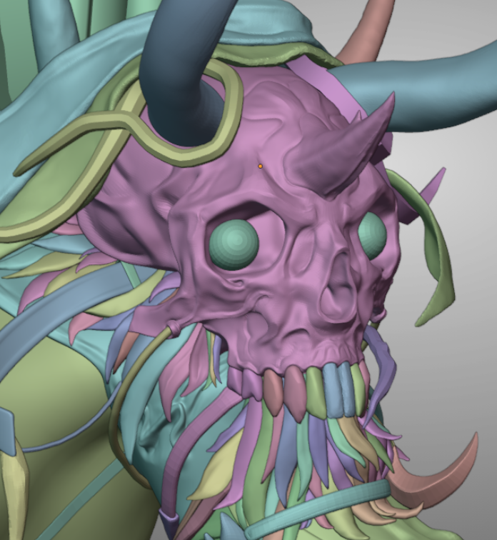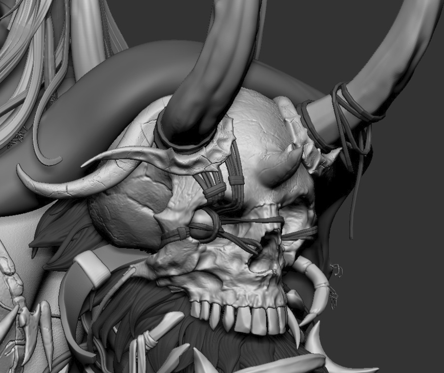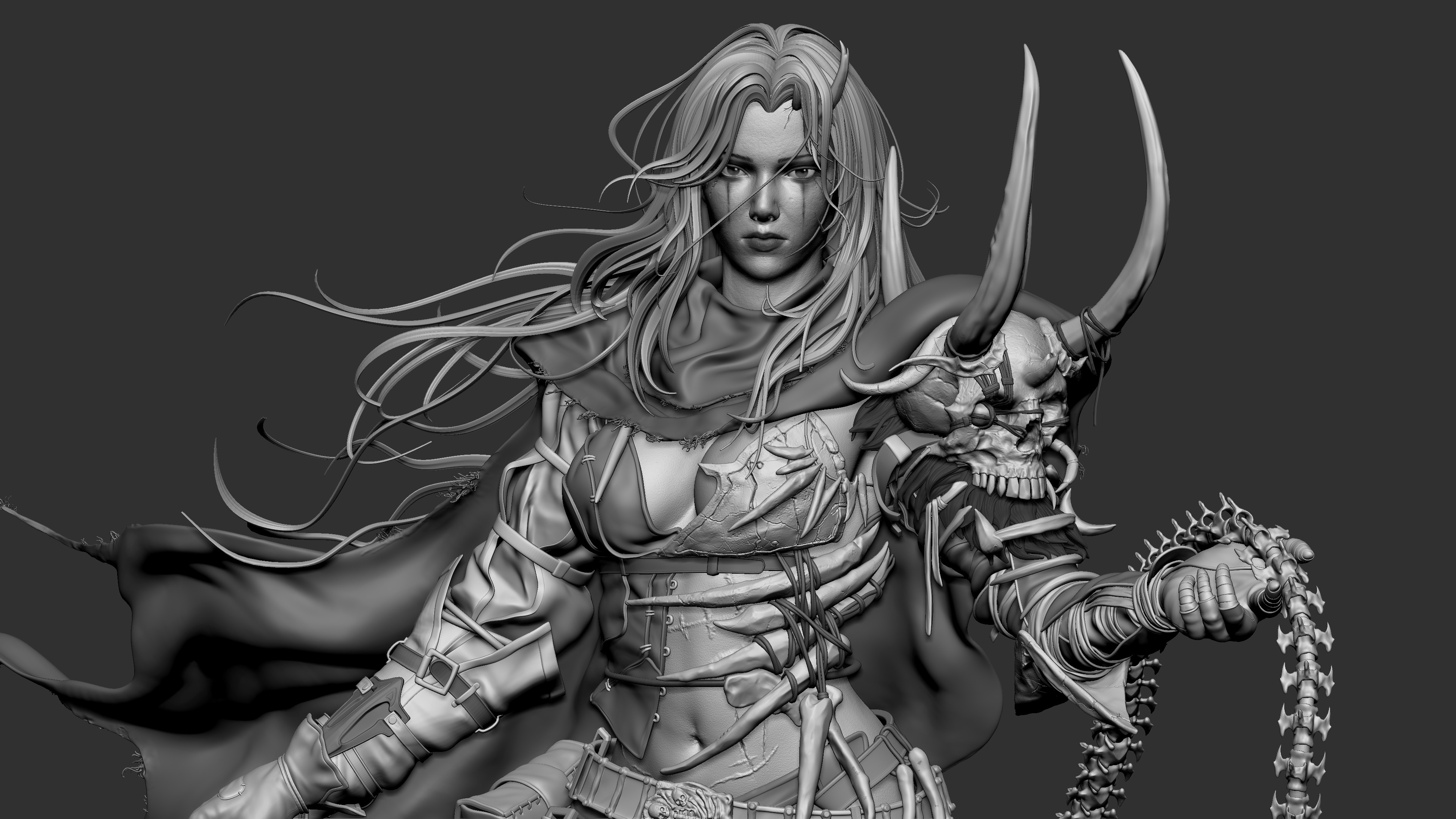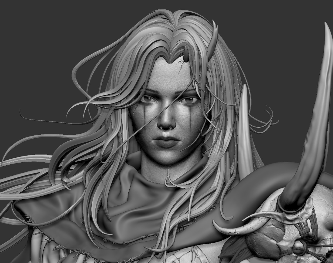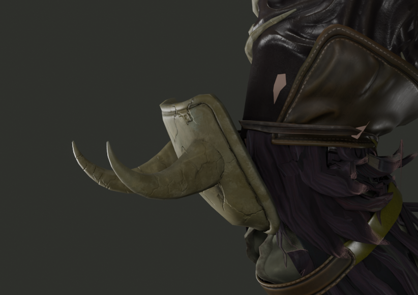 Ни одна деталь не была потеряна или упрощена, можете пересчитать все ремешки и даже перья на руке и ноге, они полностью соответствуют концепту. 192635 треугольников (на персонаже, фон и хлыст не учитываются), вес геометрии 10 мегабайт. Перенесено в Unreal Engine со всеми текстурами Текстуры 2К Ригинг и скиннинг произведен, благодаря чему персонаж был поставлен в близкую к оригинальному концепту позу. Для материала одежды были использованы UDIMs. Скетчфаб их не поддерживает, так что модель выложена там только для демонстрации геометрии.