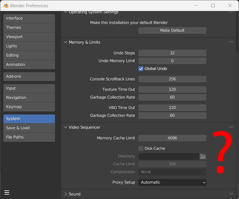 Нашел статейку про настройку кэша https://uchet-jkh.ru/i/blender-memory-cache-limit-cto-eto/ Текущие настройки на пике, кэш стоит 4096. Правда не понял, почему в разделе Video Sequencer окно кэша, надеюсь не только для анимации можно менять параметр. Читал, кто-то ставил до 16к кэш и вроде помогало ворочать тяжелые сцены. Еще можно галку подрубить Disk Cache, правда на харде всего 100 гигов осталось, и 100 на SSD, хз. Кто шарит в настройке кэша, сколько оптимально поставить примерно? Опасаюсь, как бы комплюктер не сгорел к куям собачьим от таких манипуляций с настройками памяти, ну и просто чтоб производительность не ухудшилась по сравнению с текущей, я не шарю. Да и поможет ли это как-то?