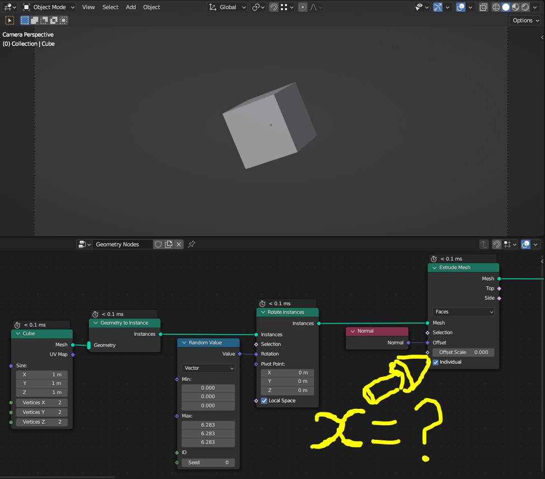 >>332470 (OP) Есть рандомно повёрнутый куб. На какие значения нужно экструдировать стороны куба, чтобы они стали перпендикулярны точке обзора, то есть чтобы для зрителя они казались просто линией? Шарящие в векторной математике есть?