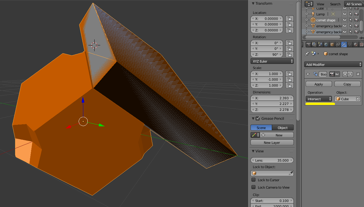 Boolean регулярно не то что привирает, а прямо откровенно ОБСИРАЕТСЯ на ровном месте. Вот например пикрил. Это усеченный ромбододекаэдр, к которому я приложил сбоку брусочек, который входит в него поглубже (пересечение там 100% есть, я поставил его ровно как надо по координатам). Включаю boolean modifier, чтобы вырезать этим бруском "оттиск" на грани ромбододекаэдра. На скрине плохо видно, но если присмотреться, то на грани слева такой оттиск уже сделан (внимание на ребро между левой и той, к которой прямо сейчас приложен брусок). Этот оттиск - убирание основной части грани на пару миллиметров вглубь, оставляя тонкую рамку по краю. Так вот, я еще даже не успел переключить дефолтную опцию intersect на difference, как Блендер уже обосрался и сделал вместо пересечения кривой юнион двух объектов. Переключаю на difference - получается не ромбик минус брусок, а тупо брусок целиком без ромбика.