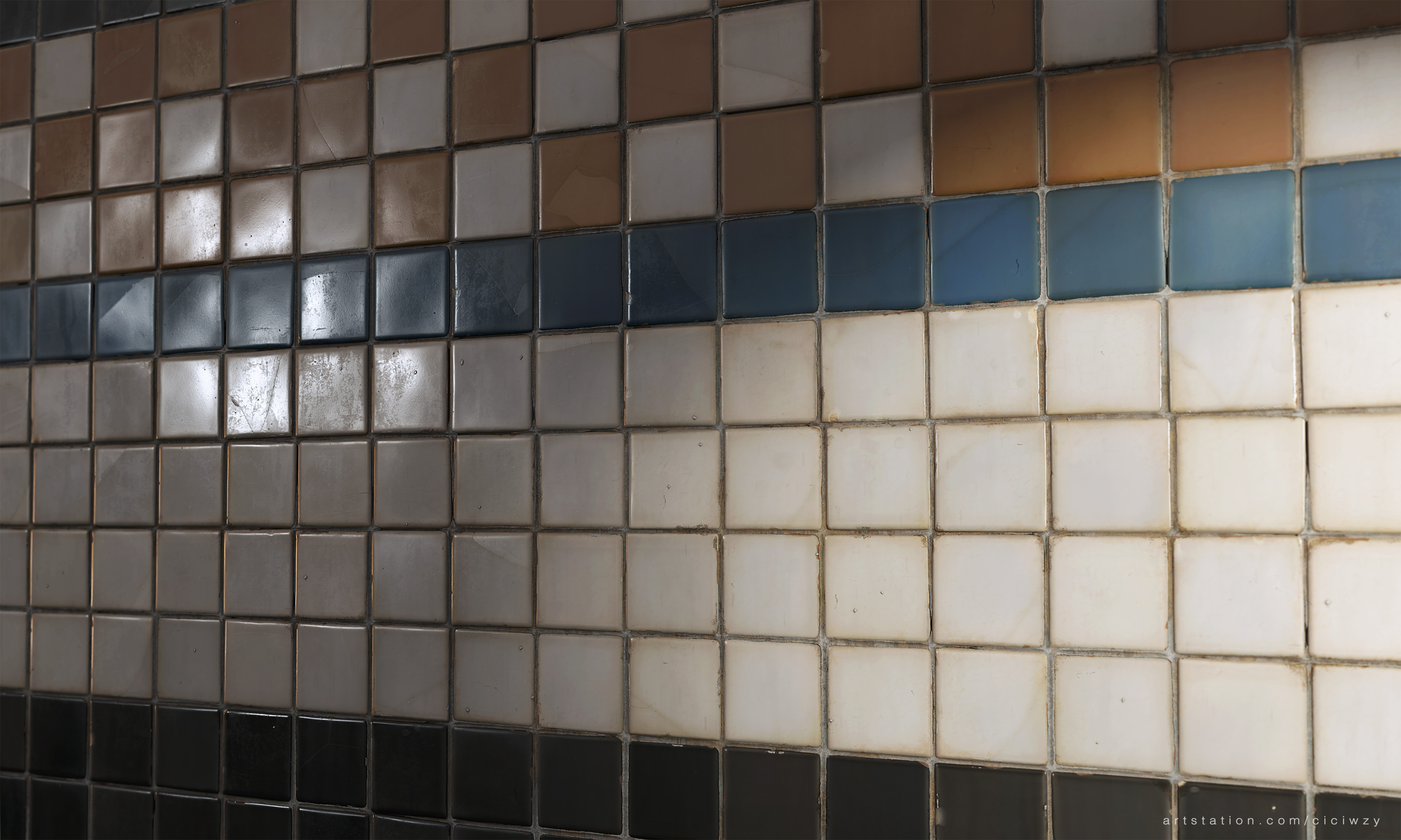 >>333883 Всё ещё веет генератором, так как плитки хоть и сдвинуты аля «криво положили» не имеют вращения вокруг нормали, кажется нет отклонений от нормали стены. Нет никакой общей градации, что часто встречается у очень старой плитки. Например залапанность по центру, грязь от низа и т.д. Но это уже общей маской по месту обычно.
