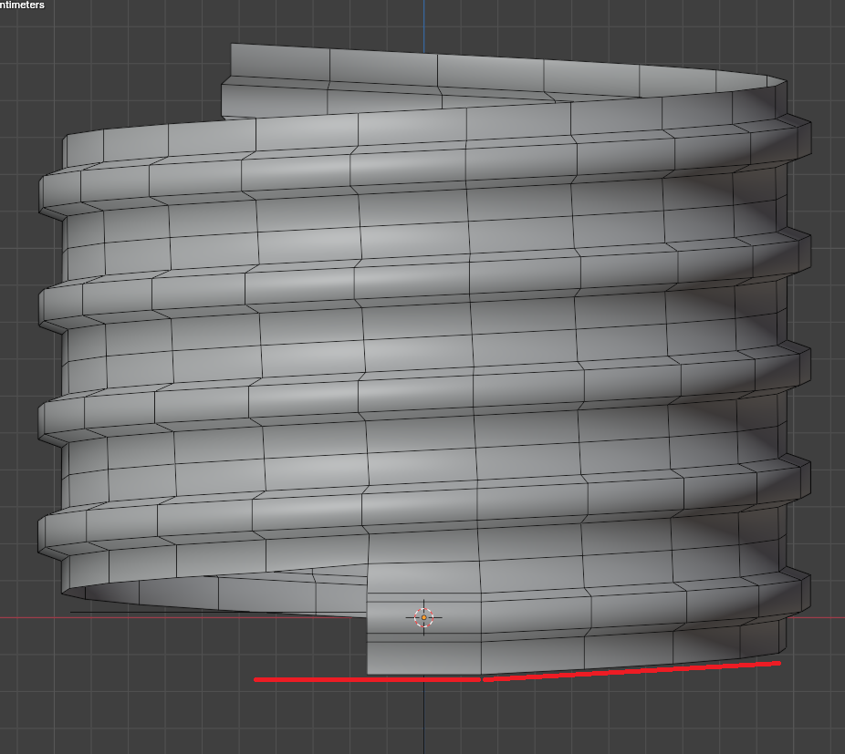 Сап, бленданы! Пытаюсь сделать витую форму, всё как бы получается, но есть нюанс, который я не могу поправить. Пикрелейтед. Первый элемент в массиве не сдвигается по оси Z как остальные. Из-за этого финальная форма кривая по шву. Как фиксить?