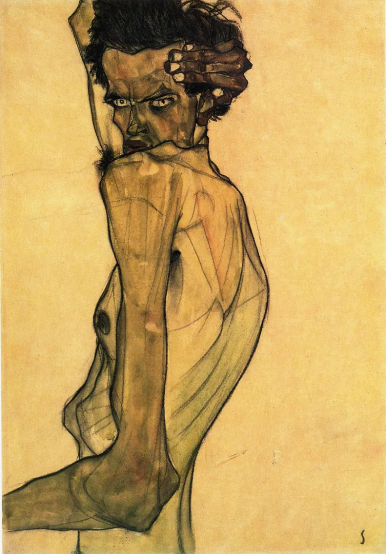 >>335077 > а гипертрофированная анатомия Нет, ту именно хуевая реалистичная анатомия. Никакой гипертрофии, гипертрофия она вот, на пикче. При этом Шиле мастерски владел анатомией, ни одной ошибки в его работах нет.
