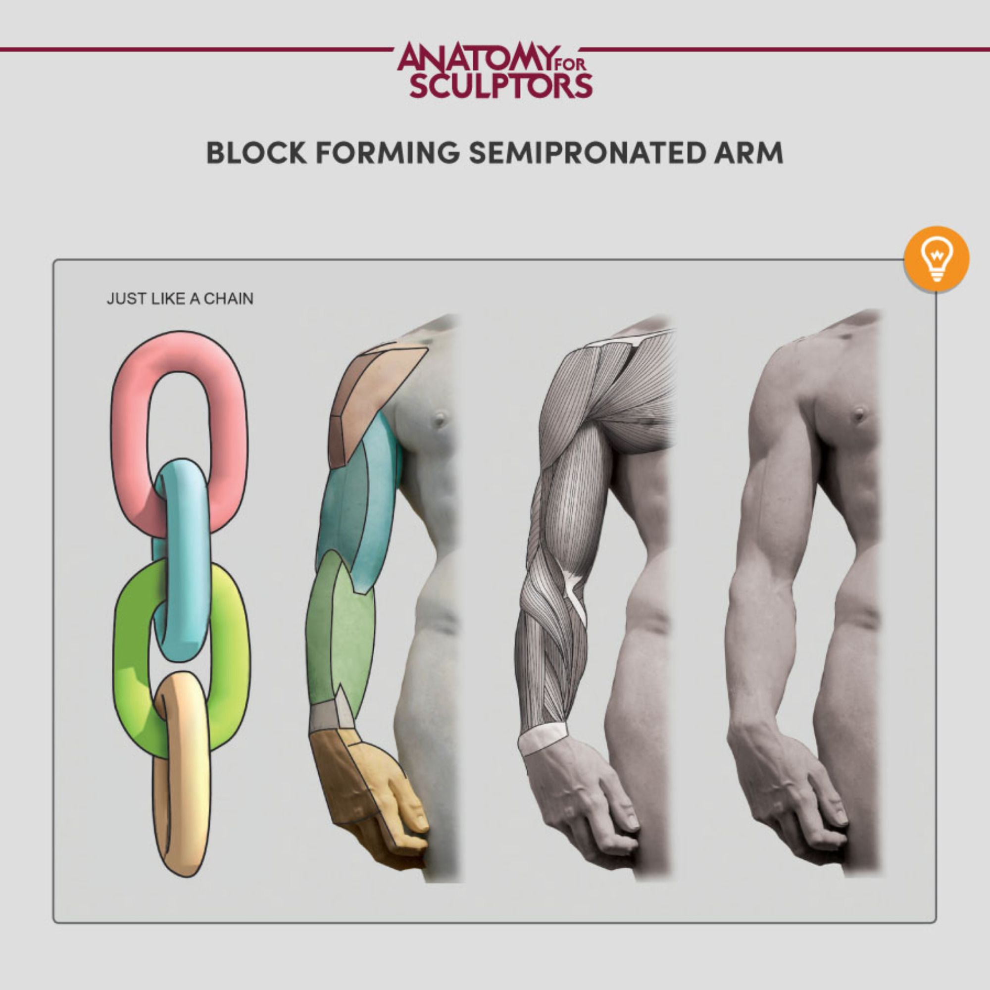 >>335163 >Та я блин не понимаю даже где у меня ошибки, чтобы их проанализировать и исправить По идее сначала надо понять общую форму, составить корректный блокинг человека из просты фигур, а потом уже начинать прорабатывать мышцы, их крепления итд. Пока ты не можешь руку как пикрил собирать из примитивов думать о том куда уходит бицепс и где расположен брахиалис как будто не имеет смысла.