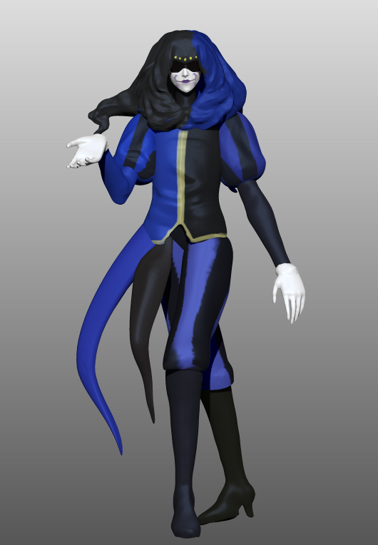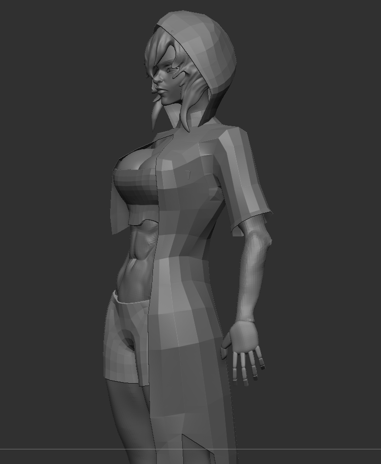 Кустодиня-эльдарка. Дальше блокаута делать лень. Там на арте дохуя деталей, окаймлений ровненьких, но это нужно учиться ретопить и делать нормальную человеческую сетку.