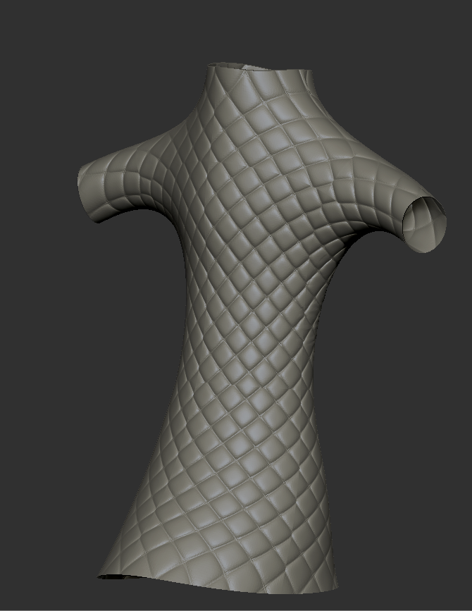 >>335649 Попробовал твой способ, ремешнул немножко, моделлером добавил каждому полигонну по своей полигруппе, дивайднул и маскировал по границам групп. Получилось в целом окей, можно играться с маской и аккуратно вздувать, НО мне нужны не квадратики, а ромбики. Можно как-то адекватно развернуть сетку в зебре или придется засучивать рукава и пердолиться в майе?