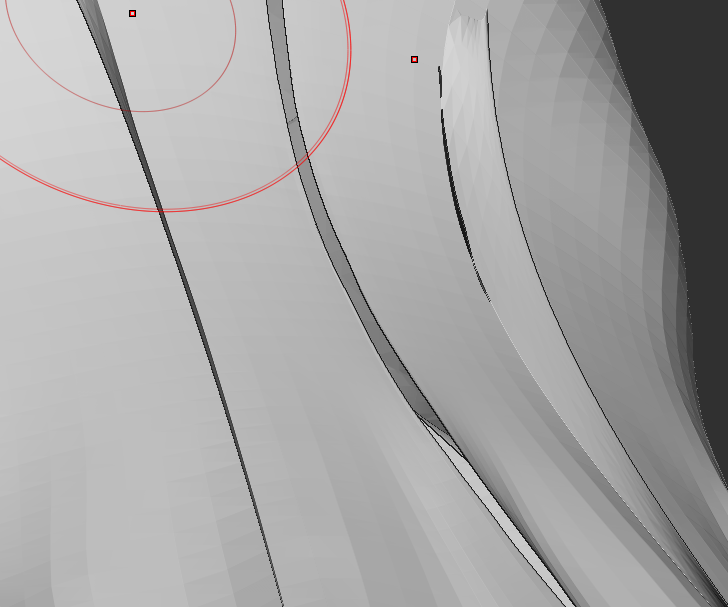 >>334829 Ну вот например как на скрине где красным намазано, я поставил отметку морфа, залил слой шумом, и по новому- пустому слою прошелся морфом- типа где красная область там сглажено, и заметил что в некоторых местах сглажено прям сильно, и это место хотелось бы подшаманить, если морфом с альтом пройтись то он как то прям сильно пердолит как экструдиш будто, и понижение прозрачности слоя тож всратый результат дает