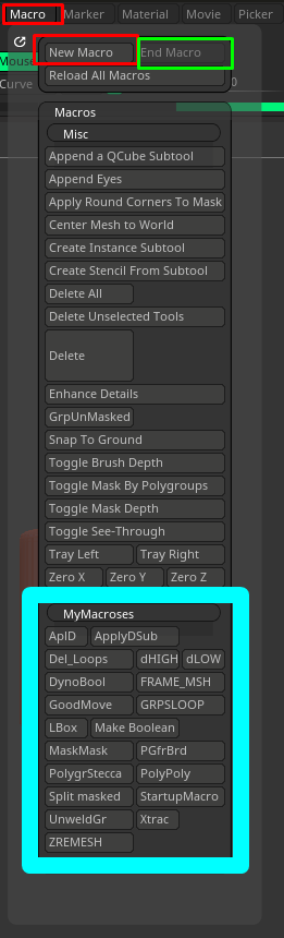 >>335997 1)Наверху macro\new macro, на всплывающее окошка жмешь НЕТ 2) Жмешь нужную тебе кнопку, например зремеш, идешь обратно в macro\End macro 3)Создаешь папку латиницей для своих макросов сохраняешь туда макрос, на все что спрашивают жмешь НЕТ 4) Воруешь кнопку втыкаешь куда хочешь. Там выше по треду написано как её перетаскивать >>335995 Не, слишком много попапов (майяловер, да?) у меня только на капслоке и табе. Зато шорткатов на кисти 123456ф1ф1ф3ф4альт+123456 16штук >>335999 Увы, я сабстенс ща почти доизучал, потом все это в блендер экспортить буду, и освещалки ставить...До этого в риноцерос вкатывался, когда моя идея сложить тачку под сабдив провалилась, как идея выложить её сплайнами в майке, т.е жопа изрядно потаскана моя. Вот и прокрастинирую на двачике T_T пожалей меня