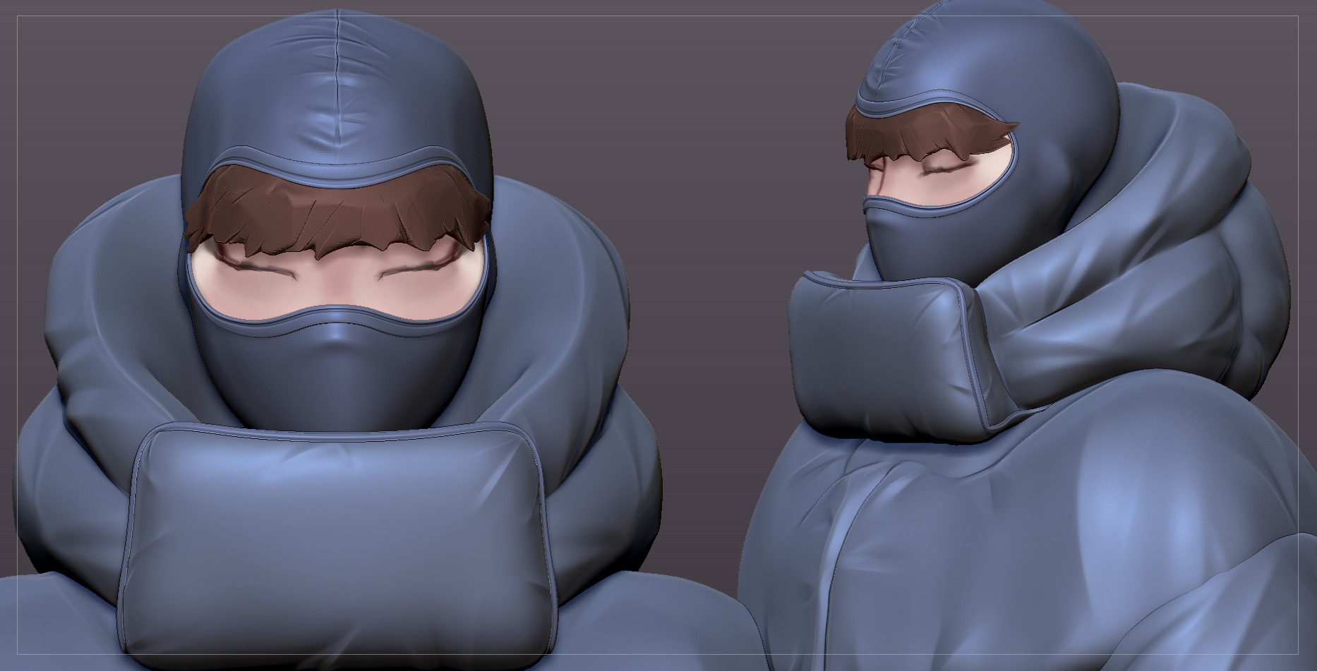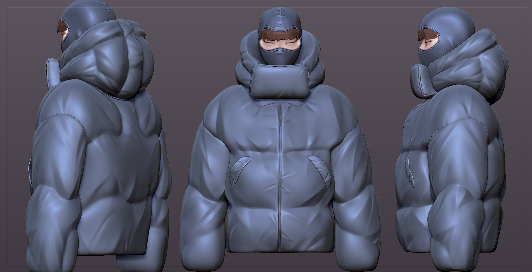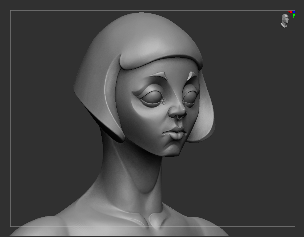 Начал после черепа лепить персонажа по курсу. От лепки тут правда не очень много в отличие от черепа. Больше работы с геометрией для блокаута. Какие-то интересные вещи узнаю, но какие-то даже нагуглить не могу. Например, не могу понять, как удерживать толщину меша. Есть ли способ? А то едва провёл смуфом, меш сузился. Туда-сюда с инфлейтом гонять чёт ну такое. Также я пока не представляю что делать с лицом. Дали какой-то дефолтный женский меш. Чувствую, я его лишь испорчу своими мазками. Но хули терять с другой стороны.