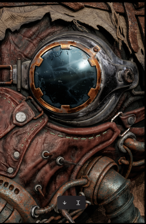 >>345269 ты снова всё нагрузил равномерным шумом деталей. Да не надо блядь всё обмазывать царапками, трещинками и складками. вот тут вообще никаких складок не будет, если кожа чуть толще бумаги. На кожаных деталях такие складки, будто это живая влажная кожа, довольно тонкая, обшитая вокруг какого-то листа.