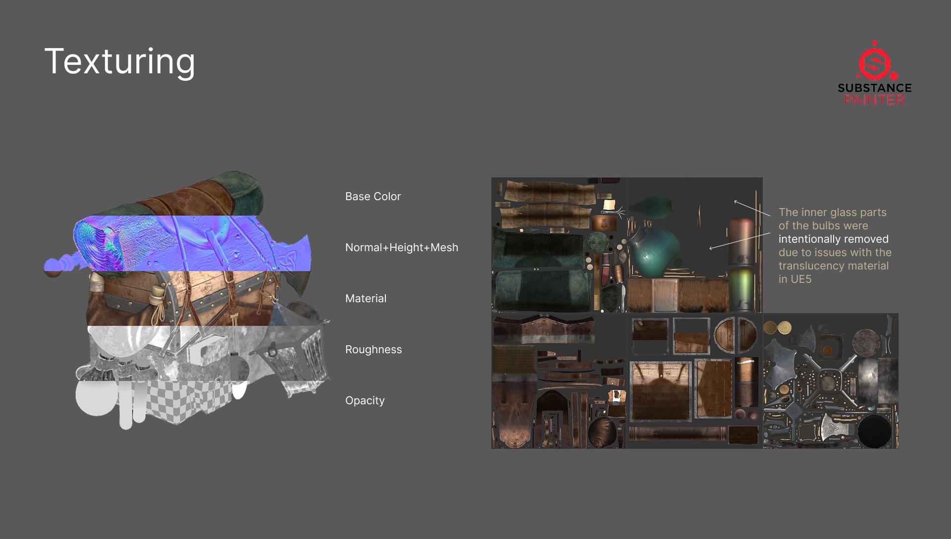 >>345191 Все с перспективы рилтайма (ака игоры): Texel density - для рилтайма плотность нужно выставлять на места где игрок будет видеть их чаще всего. Нахуя такое же разрешение текстуры в месте где все будет закрыто спиной? UV - тут блядь юдимы прям, пиздец, ассет разложен будто это главный персонаж, никто в продакшне адекватном не будет выделять дополнительные вычислительные ресурсы под ебаный рюкзак. Упаковка кстати тоже хуевая, много места тупо не используется. Топология - тут набросано лупов будто кто-то будет анимировать флягу, лол. Не будет. Абсолютно поебать игроку будет ли она вообще реагировать на движение пресонажа. Тратить время ригеров и QA никто не будет ради этой параши. Оптимальная топология опирается на силуэт, а не какие-то там правила что якобы надо квады лепить, если это не лицо например, где деформация многое решает.