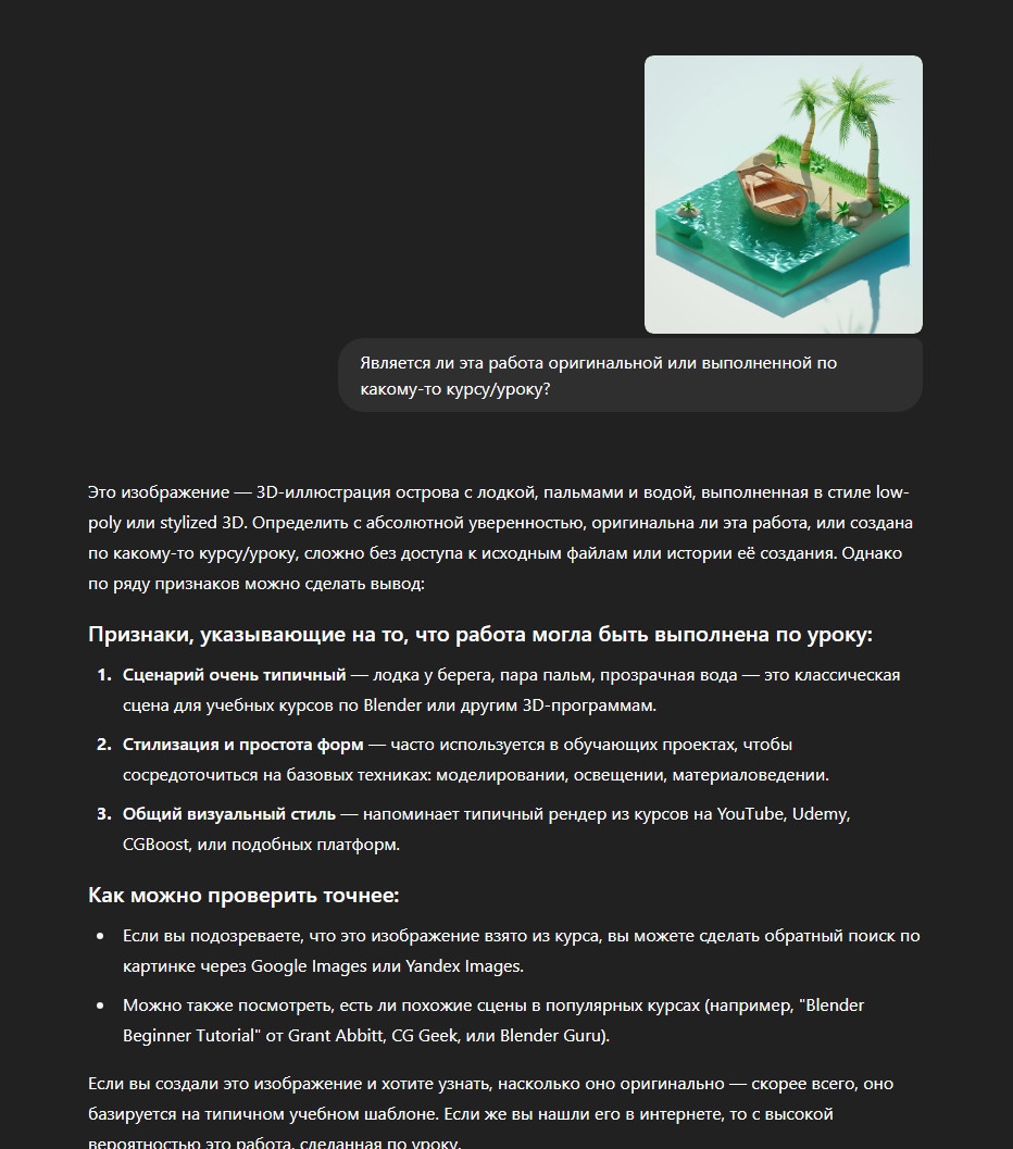>>345242 > видел работы с курсов перекрашенные которые выдавались за свои На это поведётся совершенно неопытный искатель. HR который нормальный, даже не зная о курсе, просто нажмёт «поиск схожих» и увидит пачку таких работ. Или спросит у чатбота, который посоветует сделать то же самое. Картинки красноречивы.