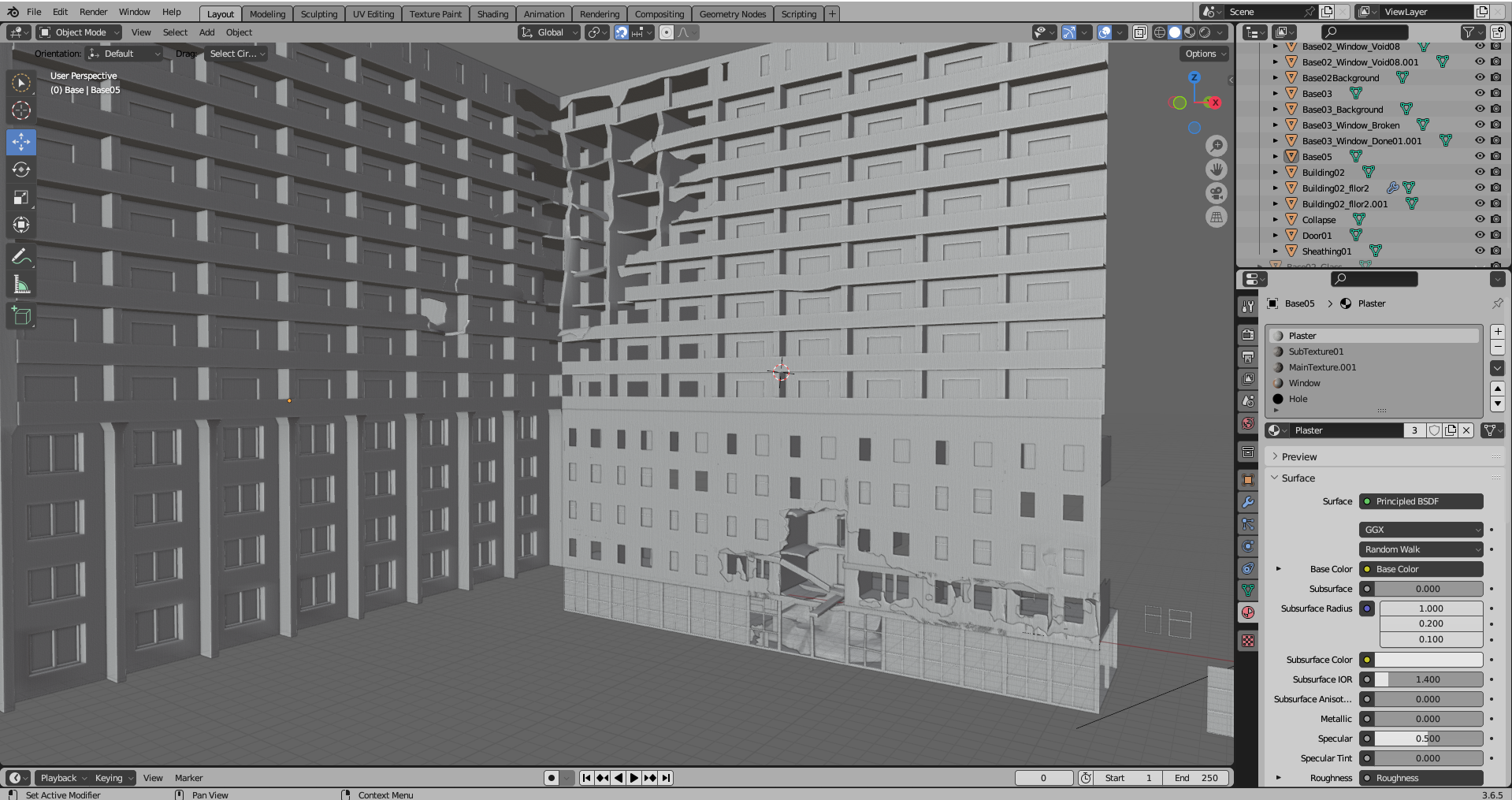 И пытайся реализовать хотя бы в меру способностей. Не надо там глубочайший скульпт пиздец. Даже если у тебя несколько кирпичей будут просто плоскостью под разными углами срезаны и раствор в дырках — уже хорошо. Микрорандом по повороту кирпича — тоже. У тебя же есть рандом по цвету и смотрится это вполне. То есть сама поверхность правдоподобна. А пролом жесть.