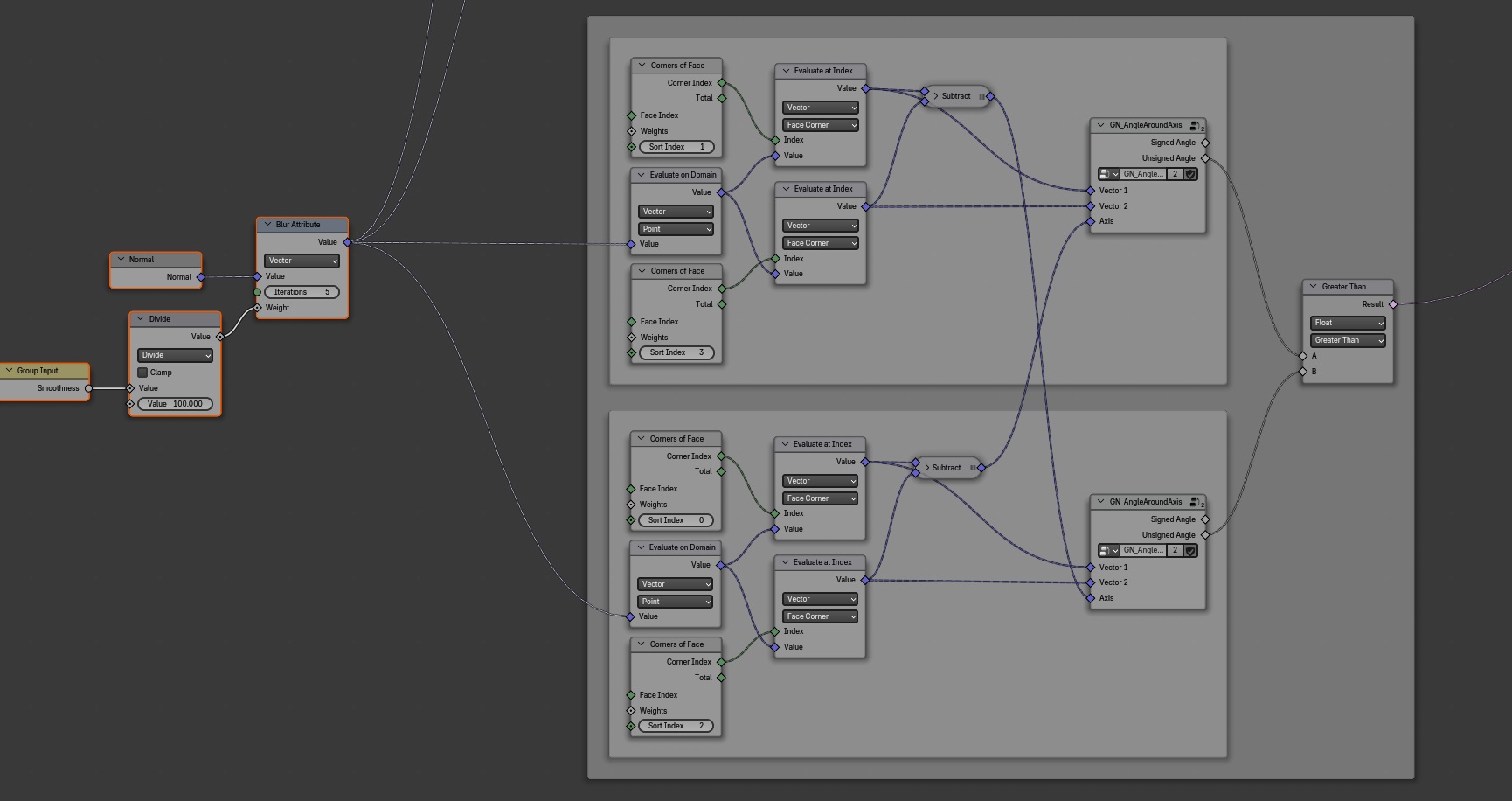 >>346321 Окружающая кривизна собирается за счёт эвалуэйта угловых нормалей в вертексном домене т.к. в вертексе собирается усредненная нормаль всех приконнекченных к нему фейскорнеров