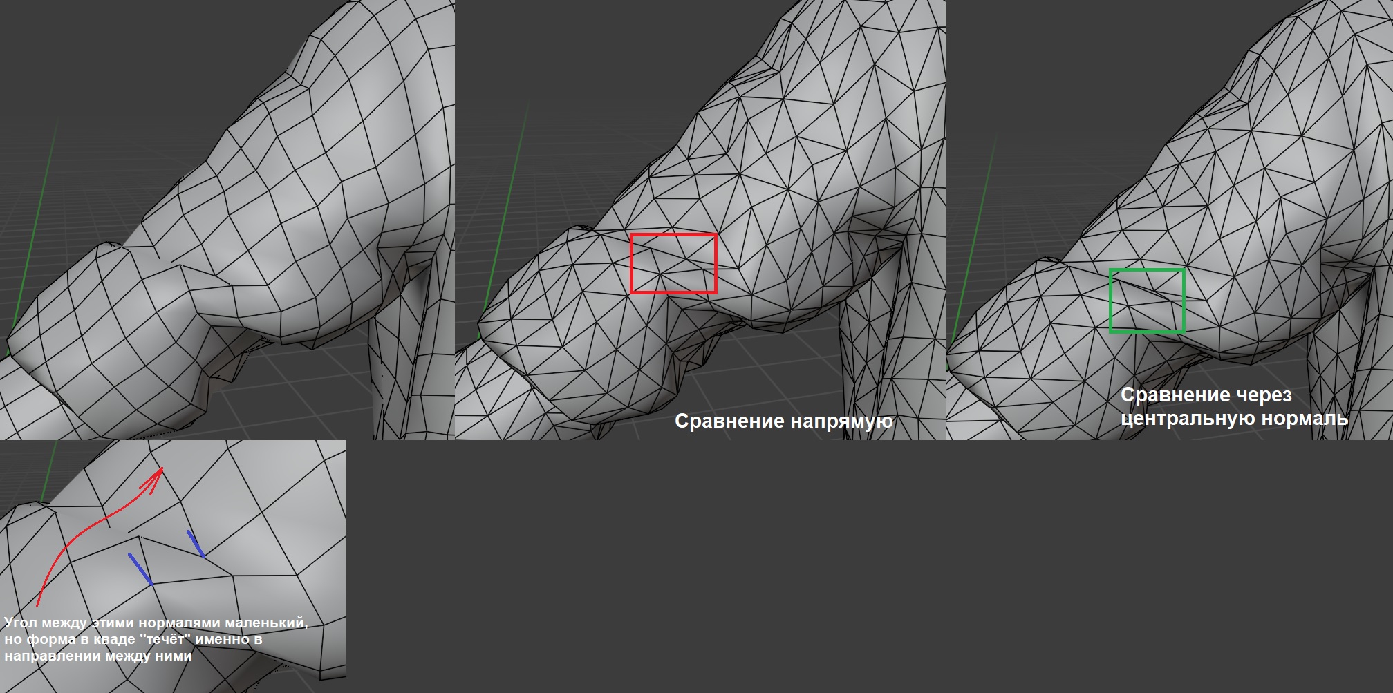 >>346314 Ну ты под конец правильно понял про блюр. Он там не нужен, тащемта как я и написал. Почему надо сравнивать именно через угол к центральной нормали? Наглядно - поэтому