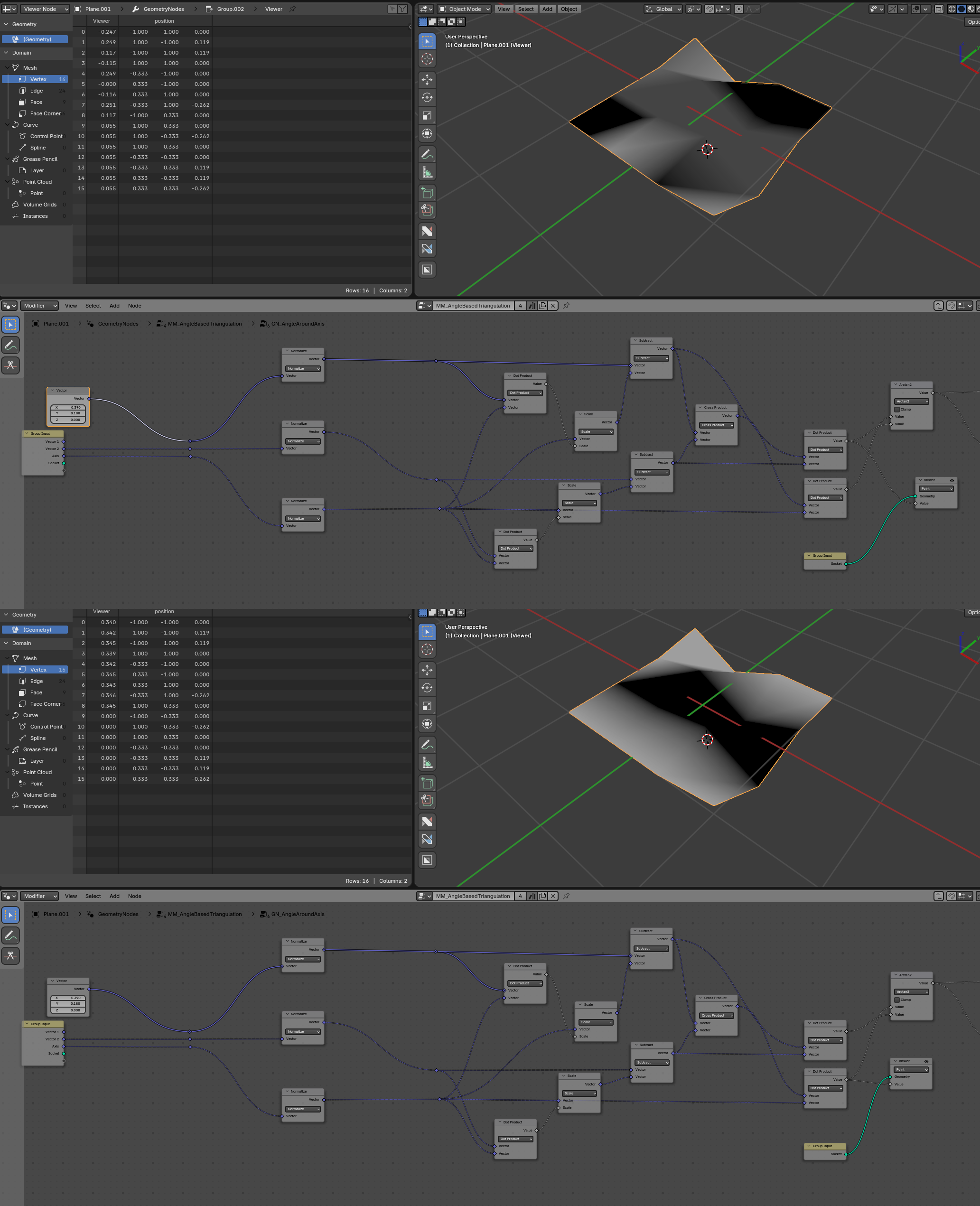 Это от конкретного набора векторов и оси зависит. Просто в данном случае на меше все наборы вводов по совпдаению результируют в нули Если ввод чуть менее кошерным сделать, то видно как они отрабатывают оба