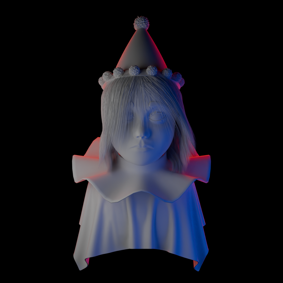 У рефа губы ещё толще, и подбородок выше к губам, а так же другая форма носапырки прям такая еврейская картошка нехуйственная, ещё реф сбоку полноценного не нашел, но под углами +- тоже самое. Мб потом как нить допилю придерживаясь к рефу сильнее и ещё многие моменты вроде ямочек на краях губ и складки вокруг лица не проработаны в виду полигонажа, но эт пох, на текстуринге домалюю