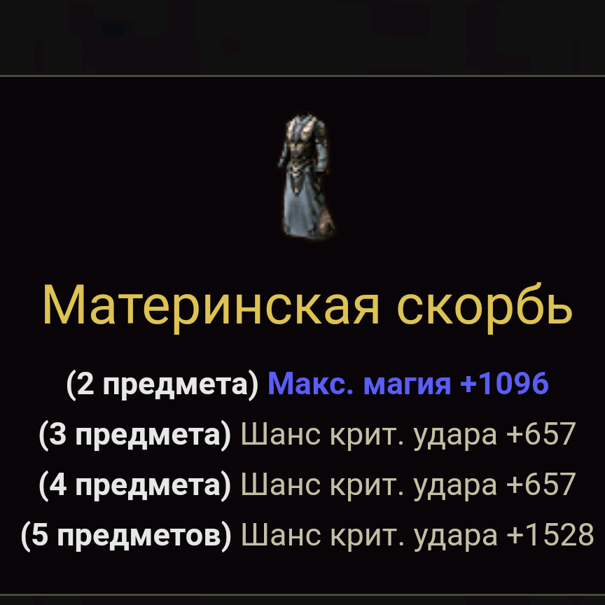 >"материнскую скорбь" Бегал с ним - всё было гораздо хуже. Он критурон поднимает, а не критшанс. В результате долбишь беленькими беспонтовыми цифирьками.
