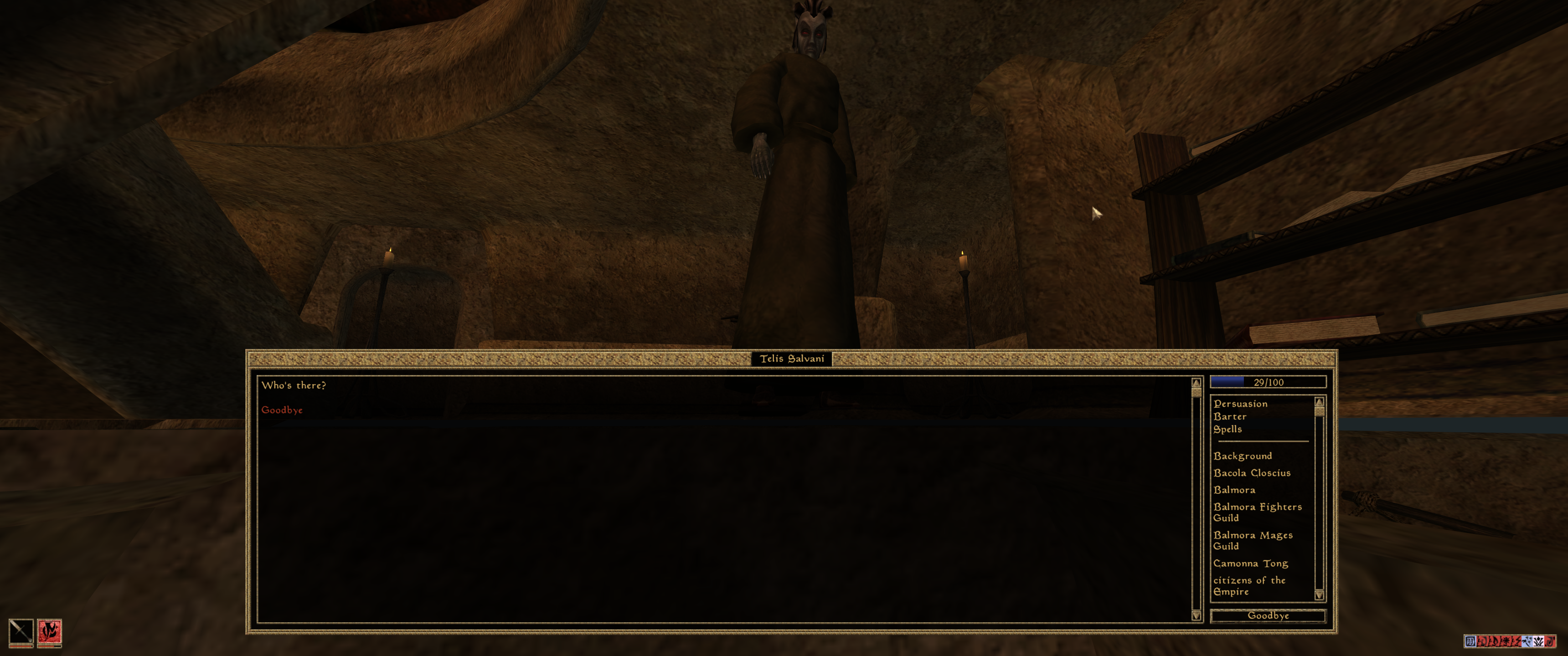Кстати, а вот смешно, если через текстуру поговорить с челом в храме, то он скажет: "КТО ЗДЕСЬ?" Именно с этого момента писался анектодд про дрочащего данмера?