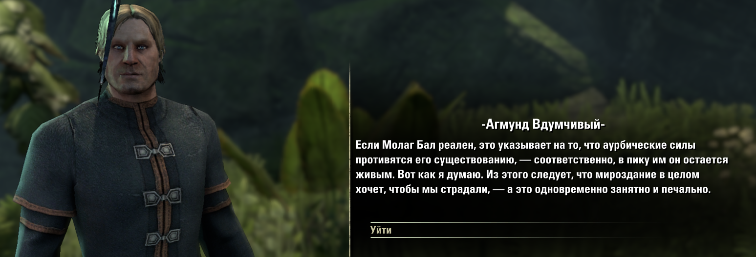 >>1967190 >Любой альянс Так-то да, мы просто в сортах хуевости тут разбираемся. >босмеры их просто не любят Босмеры вообще кроме своего леса ебучего никого не любят. Проходить первые локации АД где все хотят убить Айренн но вместо того что бы собраться и заколоть ее как цезаря просто сливаются по одному - было забавно, а потом как начался босмерский лесодроч - у меня аж упало. > бретонцы считают орков за зверей максимум база >Западном Вельде Эх, скидочку бы...
