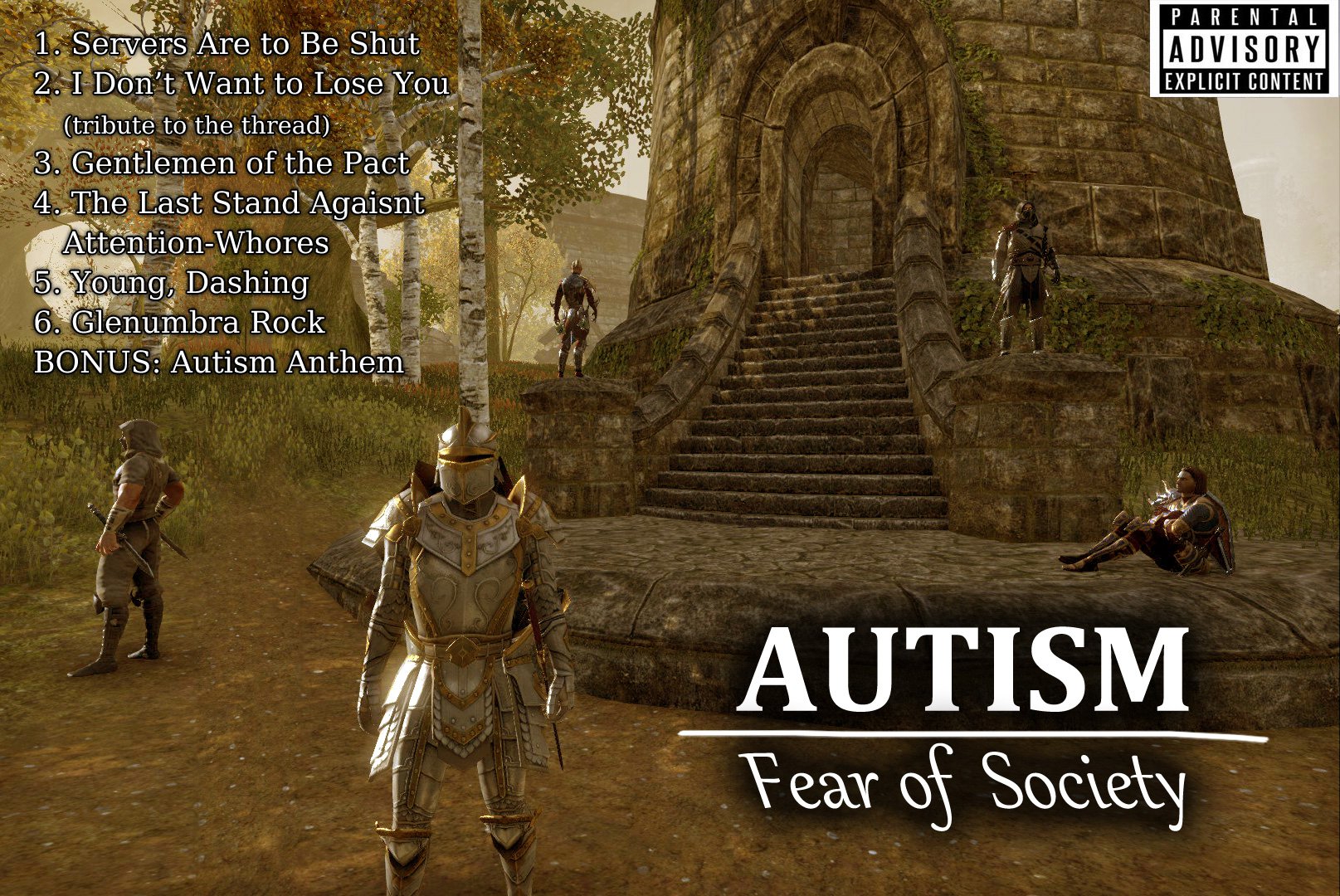 >>1967176 > excited шитая белыми нитками Любой альянс. - В Доминионе альтмеры считают каджитов за зверей максимум, а босмеры их просто не любят (Марка Смерти названа так не с потолка), вообще независимые босмеры на чилле со своим королём, но при первой возможности всё равно съёбывают в Западный Вельд. - В Ковенанте бретонцы считают орков за зверей максимум, ресурсов у клыкастых нет, не было и не будет, неприязнь вообще взаимная, у принцессы редгардов яйца больше, чем у всех остальных редгардов вместе взятых. - В Пакте данмеры по сути против всех своих, норды - их давние враги, ящеры - их давние рабы, из шести Великих Домов два по сути выбыли - Дрес и Телванни, первые сосут бибу без работорговли (отдельные кланы копротивляются, и они вообще вне закона), вторые прямым текстом сказали "идите нахуй".