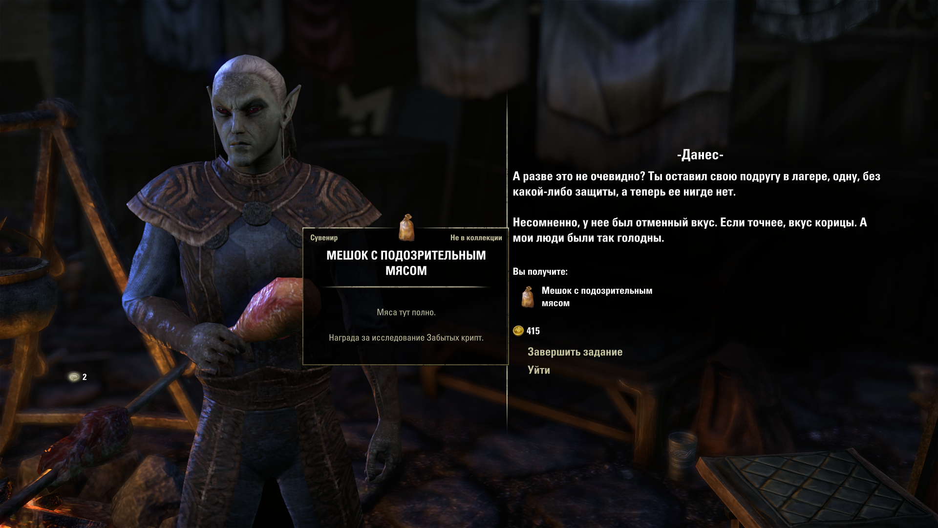 Какой же пидорас ебаный этот квест писал. На две минуты отвернулся ну пусть на час по игровому времени а девку уже убили и сожрали. И хуй ты с ней поговоришь если уже сказал что в лагере безопасно, только Уйти. Хотя бы душа этого выблядка теперь сгорит нахуй к хуям ебаным, подпитывая зачар моей заточки.
