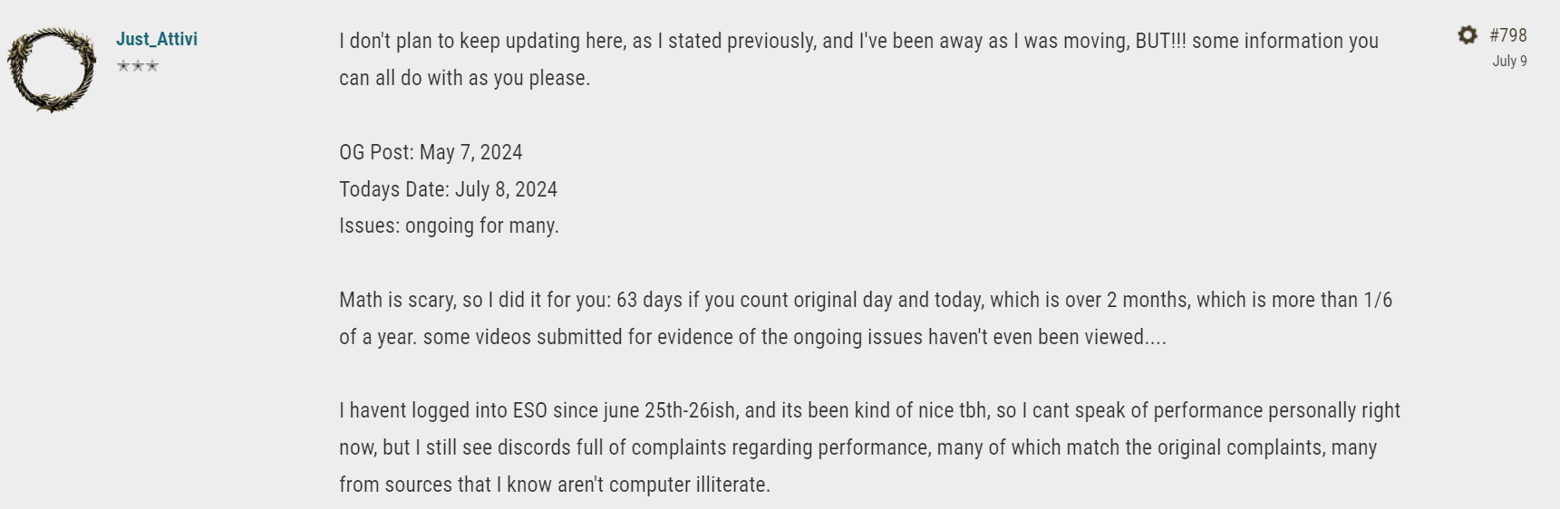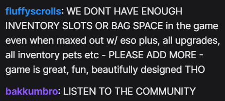 >>1967301 Обновление №43: обзор На тестовый сервер его зальют 8 июля, в релиз выходит 19 августа. Основные особенности: ✨ Каталог домов «Home Tours» ✨ Позволяет делиться своими и находить дома других игроков ✨ Различные фильтры и метки для уточнения результатов ✨ Система рекомендаций и предложений для вывода домов на главную страницу раздела Два новых платных дома: 🌸 Seabloom Villa, участок среднего размера с двухэтажным домом на западном побережье Оридона, на вершине отдельно стоящей скалы 🌸 Haven of the Five Companions, особняк-общежитие для пяти Соратников на границе зон West Weald и Cyrodiil Расширение Бесконечного архива: ✨ Два новых типа арен, ледяная и огненная ✨ Новая ежедневка на убийство монстров ✨ Новые строфы и видения ✨ Два новых миника-«мародёра» ✨ Новый расходник, позволяющий один раз за пробежку вызвать строфу-аватар А так же: 🔅 Серия новых классовых сетов 🔅 Улучшенный предпросмотр транспорта — переключатель анимаций 🔅 Светящиеся чернила начнут выпадать из сундуков и тяжёлых мешков 🔅 Шесть новых стилей способностей, за валюту «ценности из Архива / Archival Fortunes» 🔅 Распространение системы курированного лута на PvP-сеты, награды за еженедельный рейдовый зачёт, фиолетовые сундуки с наплечниками Неустрашимых На счёт домов, ожидалось большего, например, добавление слотов... Насчёт ПВП, надеюсь, что это не всё, что планируется в этом году... но увидим.