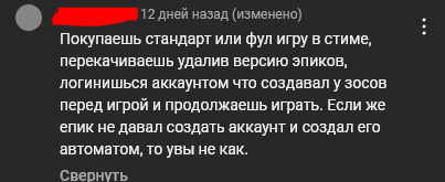 Может кто нибудь совершал подобный транс-переход от одного стула с хуями на другой и знает наверняка, вот твёрдо и чётко, если я куплю ключ на cumplete-издание игры для стима, смогу ли я играть на том же акке, на котором играю сейчас в игру с раздачи на эпике? Мне вот чел на ютубе ответил, а я хуй вообще знает мне акк эпик сам создал или именно я его регал.