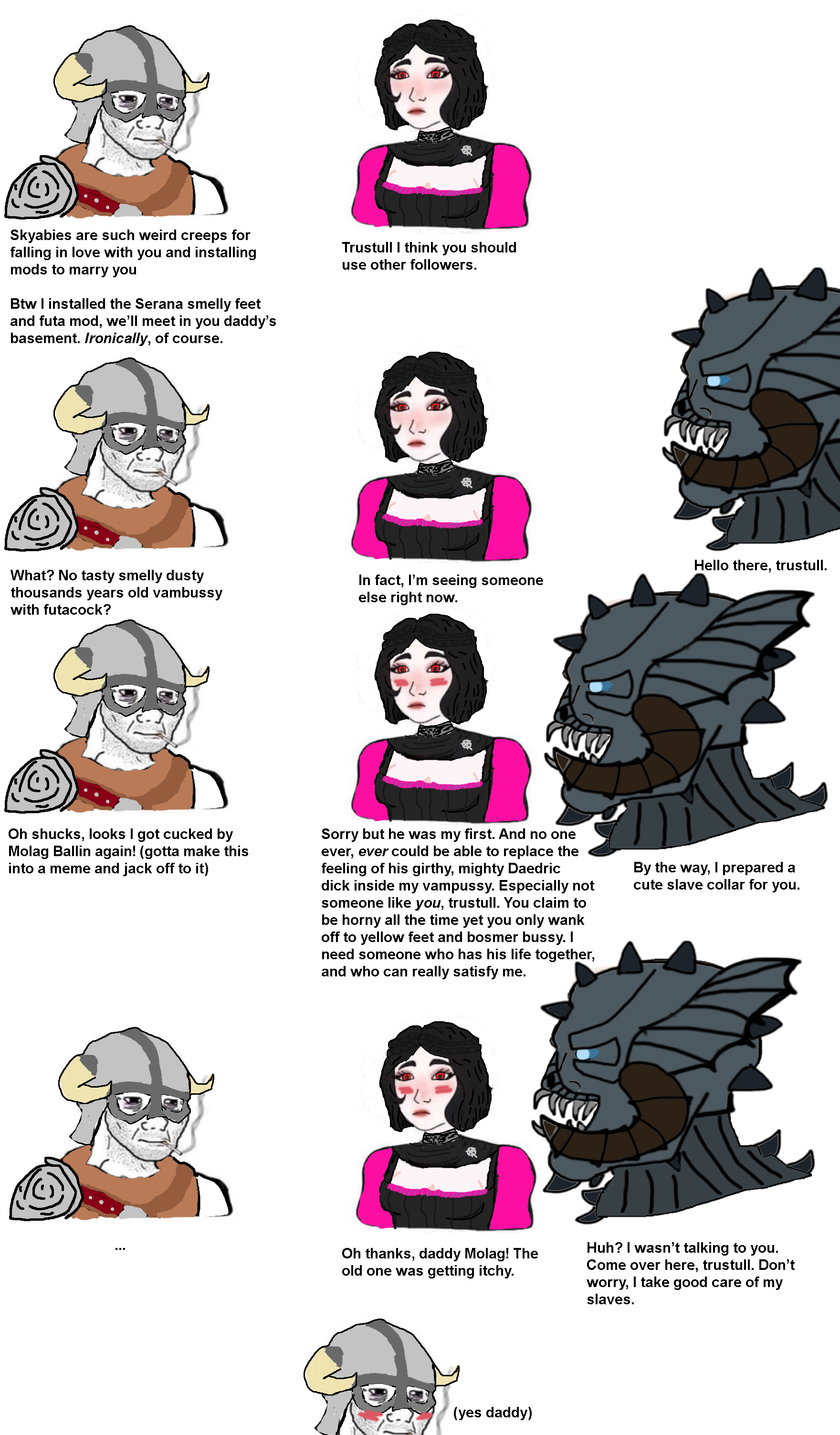 >>1947111 >>1947112 Ога френдзона, она в квестиках при пенетрации всяких бандитов так распаляется что потом окончательно досасывает все сила из Довакина. У неё же мозг девочки с нереализованными сексуальными фантазиями, мальчик довакин нравиться, он пристаёт, с чего бы ей отказывать. Тем более у неё никого небыло, сколько там тысяч лет? ебля Сераны канон просто она не включена в геймплей.