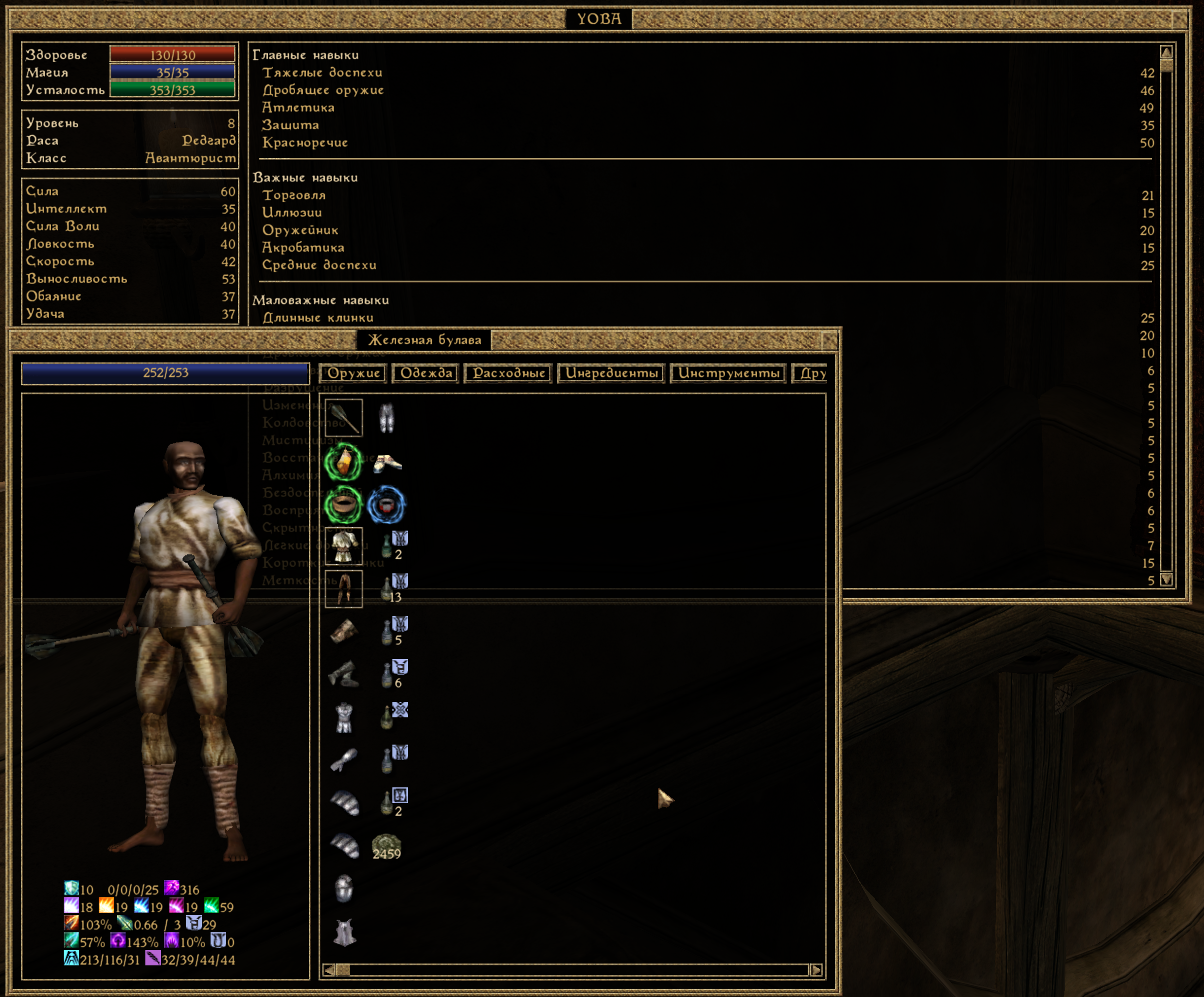 >>1998592 щит поможет против милишников и лучников, а нужен ли они вообще - только если ты нодезер какой-нибудь. Двуруч гораздо веселее играется. Кстати, кто там говорил, что играет чтобы приятно провести время? Так вот, с зачарованным двуручем будет ещё приятнее. Альтернатива зачарованному оружия - только кастовать баффы самостоятельно, но это маг. Воину же альтернатив нет - и не было - эту ключевую черту морровинда и тесов я не менял.