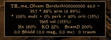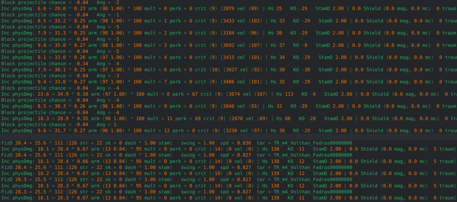>>1998156 Первое сообщение даёт неполную инфу - оно показывает начальную скорость и не показывает бонус скилла. Второе сообщение при хите показывает инфу о скорости в момент попадания (она меняется под действием гравитации и учитывается в расчёте дамага). Но я забыл вывести бонус скила для стрел во второе сообщение. Цифра из второго сообщения = урон стрелы * (скорость/5000 + бонус скилла)