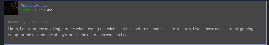 >>1998740 Мне казалось он отписывался, но ничего конкретного не обещал. По сборкам все тухло. Сейчас еще и ремастер Обливиона выйдет, совсем некому и не для кого будет делать их.