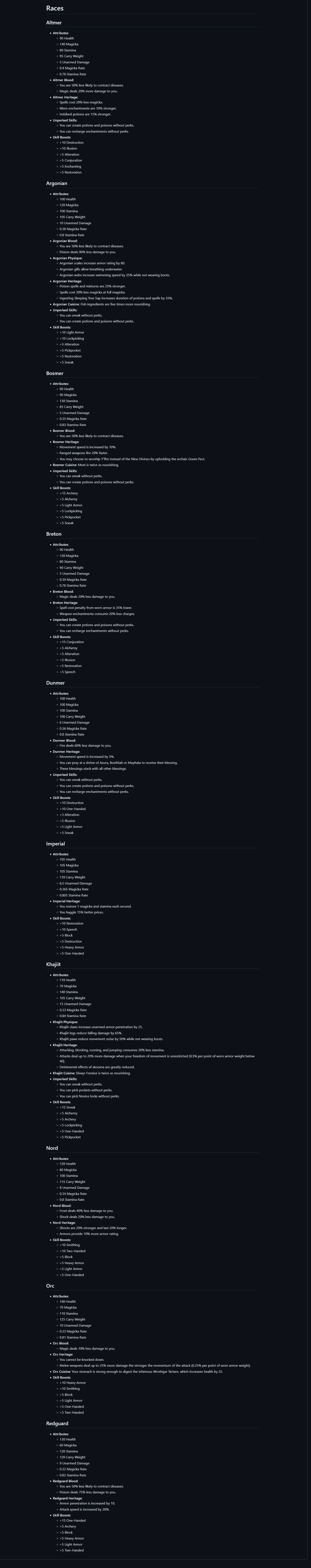 Играю первый раз, хотел сделать какого-нибудь ебучего некроманта-чернокнижника, потом увидел у каджитов устойчивость к скууме и вспомнил что давно хотел отыграть наркозависимого на стимуляторах. Энивей, я правильно понял что под изначальный билд некроманта (я слышал потом можно себя в лича превратить) надо пикать альтмера?