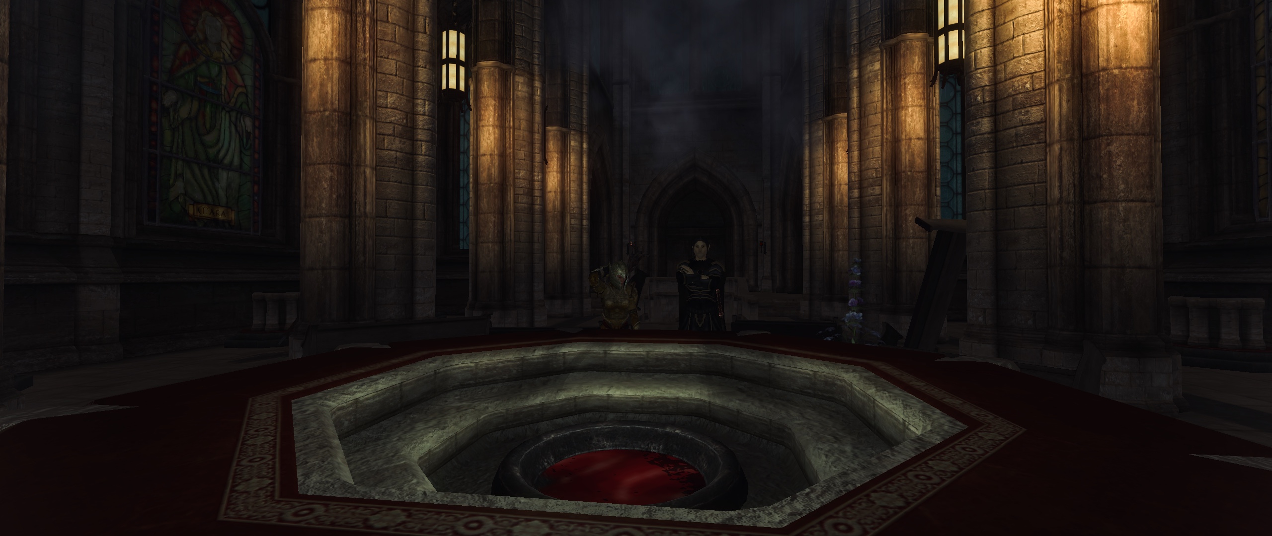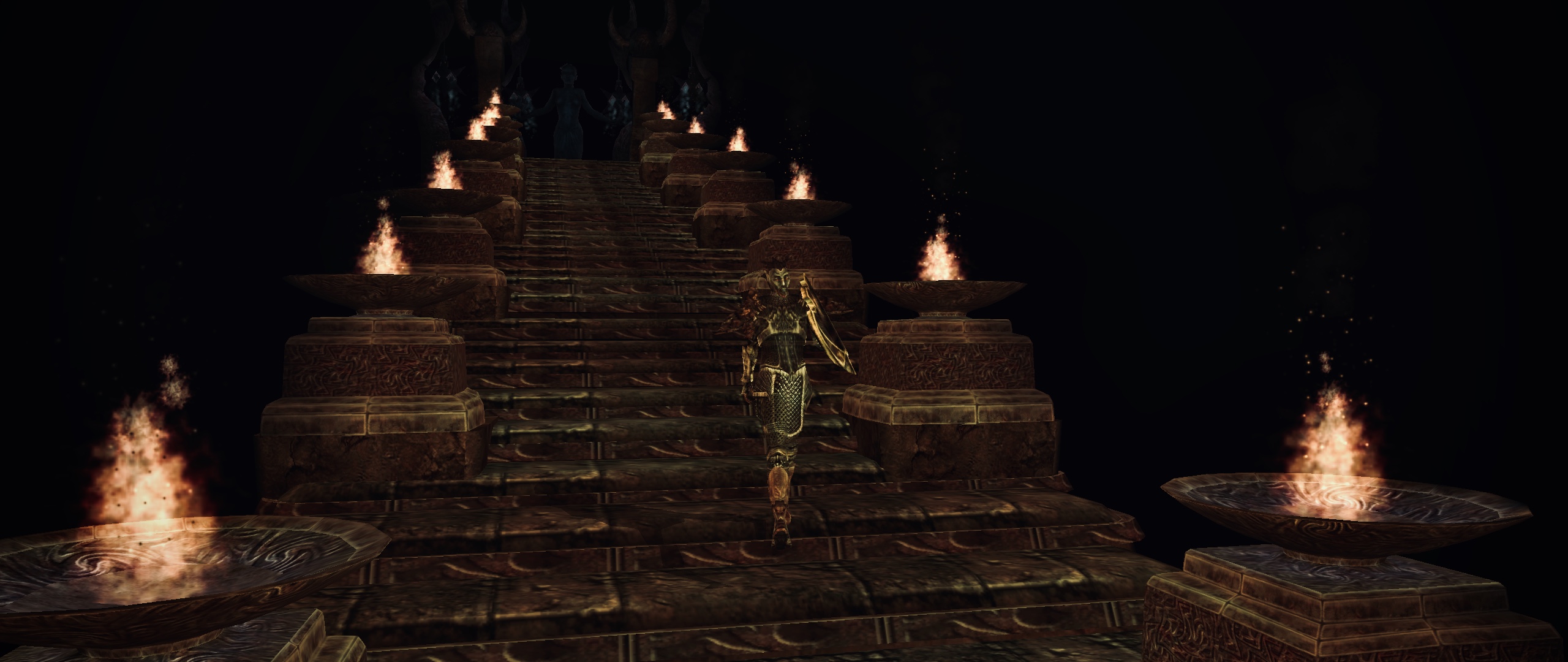 Было интересно внезапно вот так исследовать целый подземный город. Ничего не слышал про изменения касательно вампиров в СХ, но видимо эта локация и правда сделана с заделом на вампирский хаб - в городе есть лавки торговцев, хранилища, храм и порталы, ведущие наружу и в Ашмелех, видимо для связи с другой веткой клана. Как смог, зачистил город от вампиров и раненный двинул наверх, предварительно нахватав все ценное, что смог унести с собой - прокляли, и упала сила с грузоподъёмностью, едва вывез этот бой на улицах. Пока лутался в пустом городе, до меня несколько раз доносились зловещие звуки, либо какой-то скрежет, вызванный скорее всего глюченным наложением звуков друг на друга, либо рык какой-то нежити в пустом доме. Присел на очко, подумал, что кого-то пропустил, или что как в даэдрических святилищах будет - щас что-то не то возьму с полки, и у меня за спиной заспавнится дремора или еще кто-нибудь реально одна из самых страшных вещей в Морре, особенно если от первого лица играть, когда ты берешь алмаз на алтаре, спокойная музыка обрывается, и ты понимаешь, что щас повернешься и тебе дремора ебало снесет.