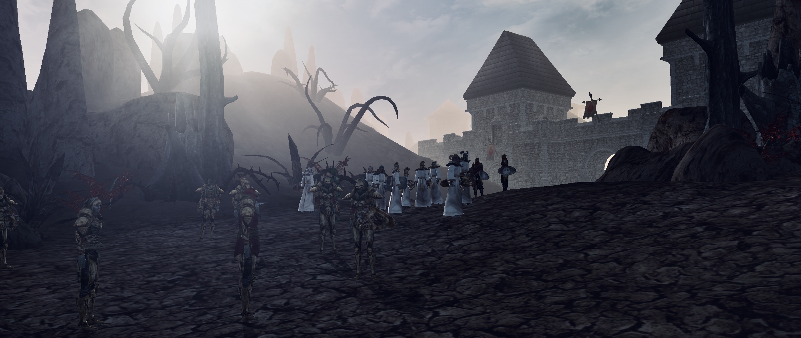 Только что заняли Андасрет. Много лет назад там пропали наши разведчики, и сегодня мы вернулись отвоевывать честь нашего дома. В васянке Андасрет сделали большим и многоуровневым комплексом, внутри которого как муравьи бегают хулиард сильных вампиров и некромантов с нежитью. Поскольку уже был там и знал про вампиров, выдвинулся с армией рано утром, чтобы постараться управиться до наступления темноты. Судя по обрывкам информации в форте и данным разведки (солдаты могут докладывать инфу о месте, в котором находятся), некроманты у них не на подсосе, а в союзе с ними и обоюдно прикрывают друг друга. Несколько солдат заболели гемофилией (о чем тоже докладывает диалоговое окошко), и пришлось своевременно их лечить. Надеюсь, что никого не пропустил - недавно уже был один такой гемофилик по квесту, который заразился на задании, попал в ловушку в гробнице, и когда все вскрылось, ему хотели рубануть башку за то, что он исполнял свой долг.