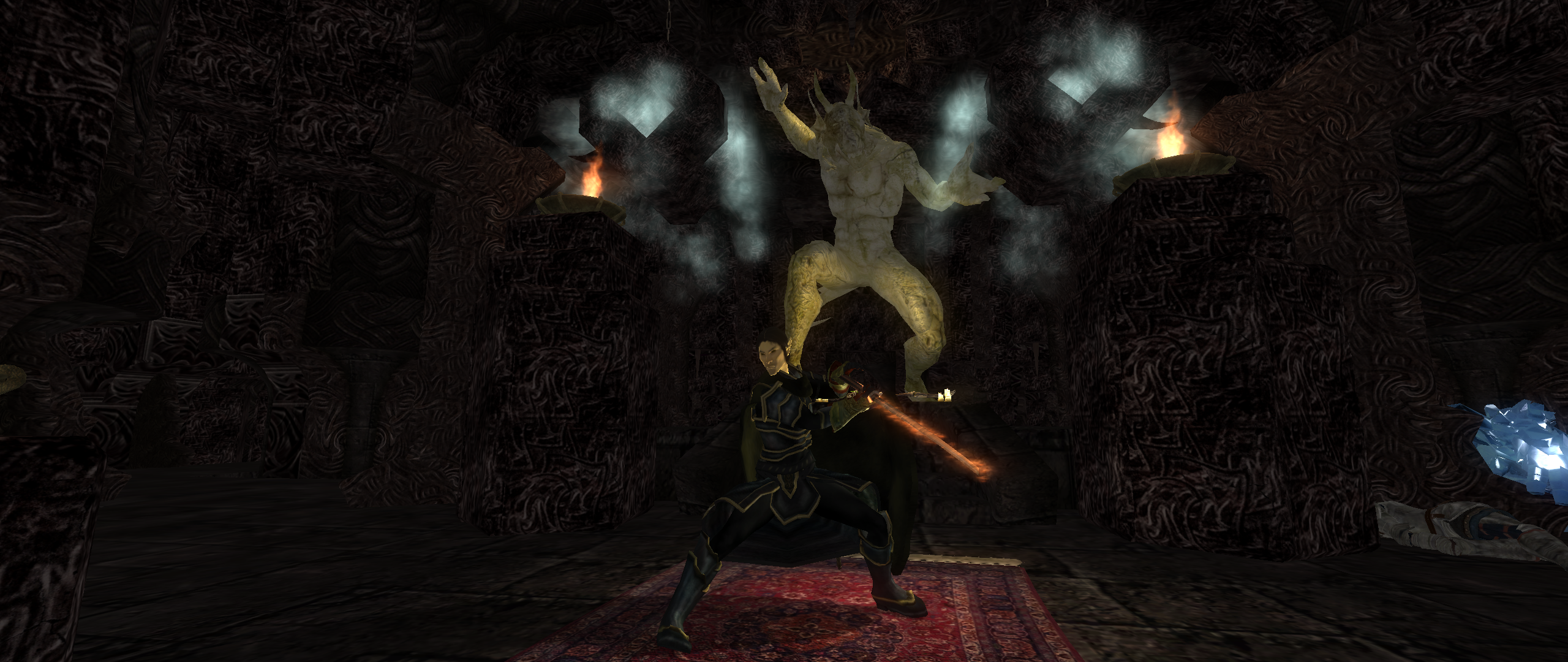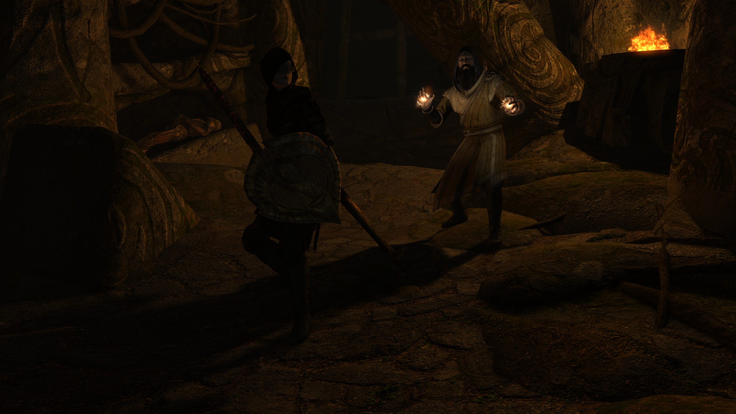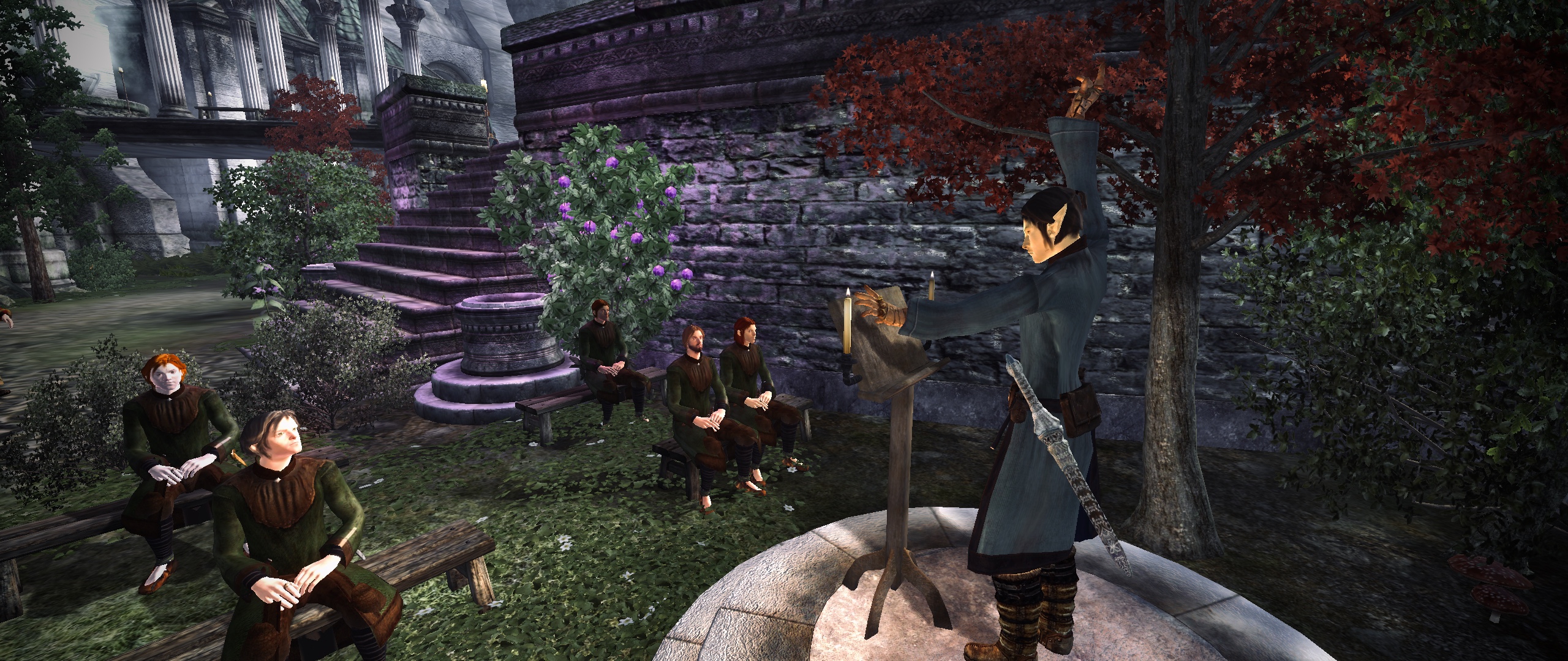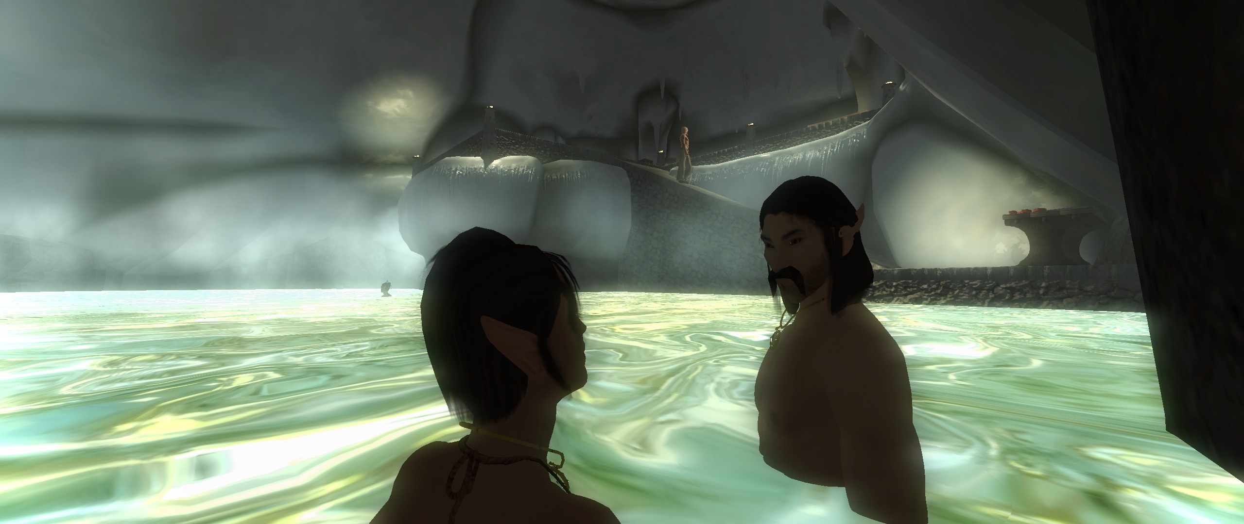 Дальше почилил какое-то время на правах послушного мальчика у редоранских дедов, тренировал солдатиков, а потом взял и решил еще раз перевернуть игру. Вспомнил место из сна, где надо было достать какое-то кольцо, поехал в лагерь Уршилаку и кланялся им в ноги, чтобы приняли (ну надо сказать, по отыгрышу эшлендеров реально уважаю и побаиваюсь, и они в СХ вообще непредсказуемые). Сул Матул на меня взъелся, но шаманка рассказала, как попасть в Пещеру воплощения. Встретился с предыдущими воплощениями Неревара, получил благословение Азуры и ушел, преисполенный волнения и величия. Дальше появляется Вивек и приглашает перетереть к себе во дворец. Вот тут стало стремно.