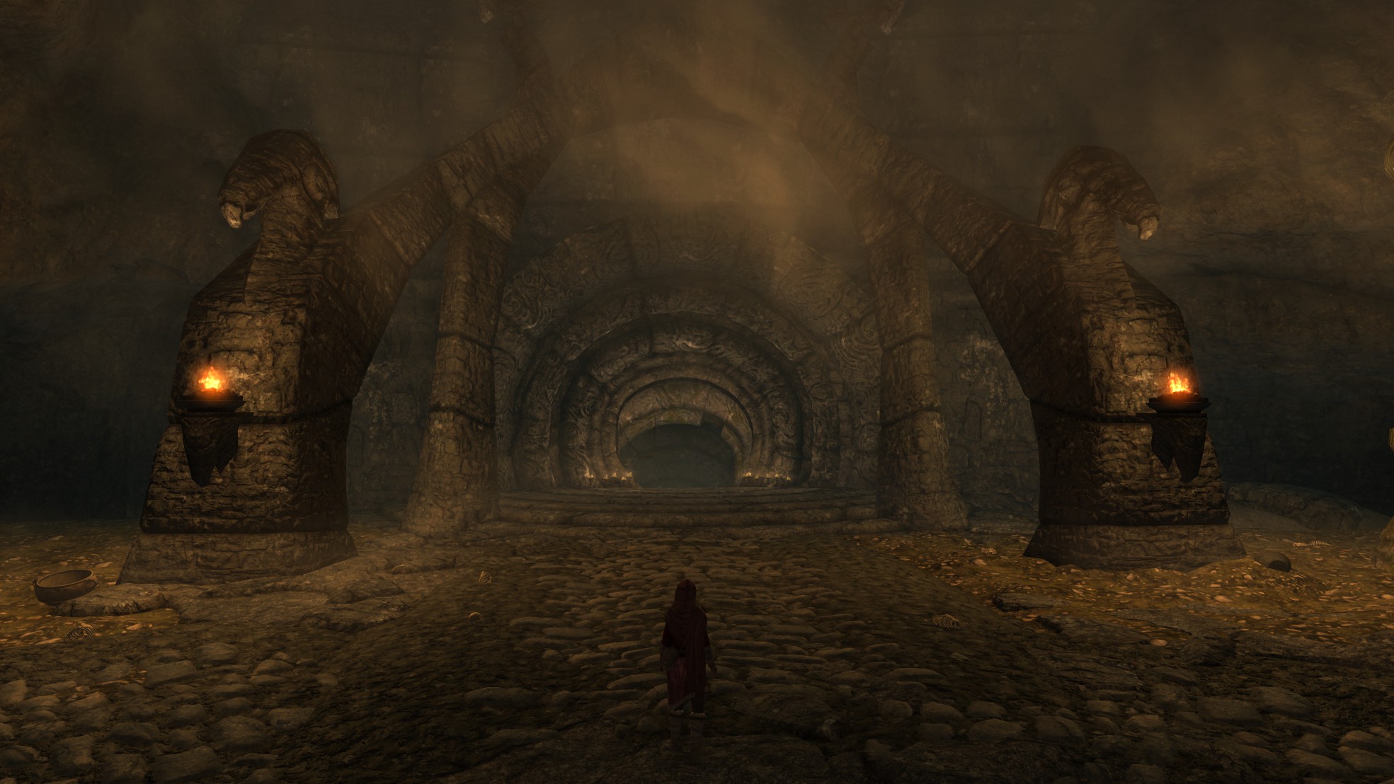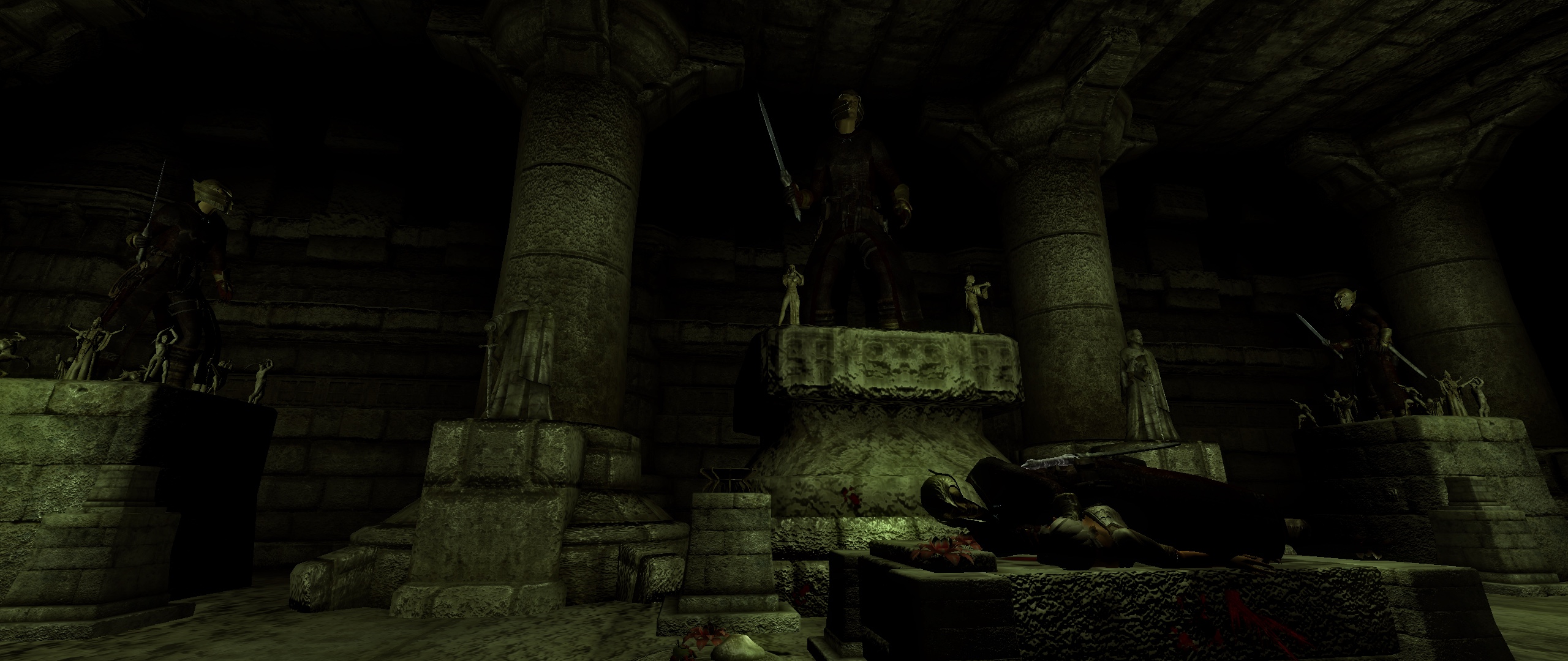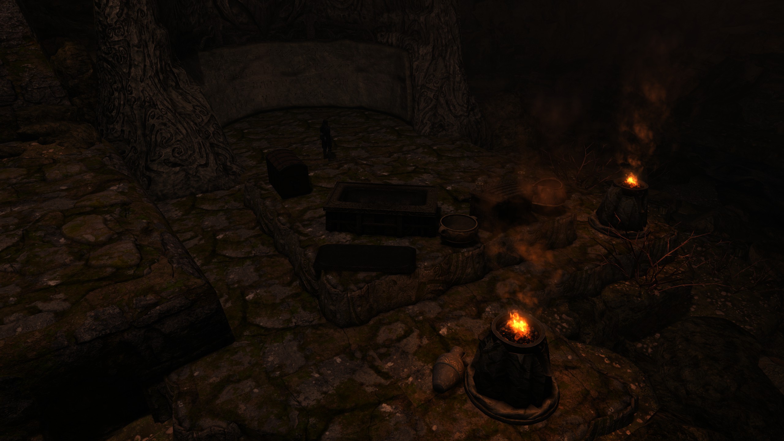 Несколько солдат погибли в ходе битвы - мы захоронили их рядом с телами павших разведчиков и стали осматриваться. Крепость кажется очень зловещей, несколько помещений представляют собой ритуальные залы с обилием ингридиентов и остатков человеческих тел, на нижнем уровне расположена тюрьма, где видимо эти скоты содержат свой скот. На верхних этажах распологается башня главного некроманта-альтмера, сторожевая башня и резиденция, которая ведет к подземному тоннелю. В тоннеле есть глубокая дыра с проходом внизу. Поскольку я не мог переместить своих солдат вниз вместе с собой (ну точнее это было бы крайне геморрно), пришлось спускаться самому. Дальше я охуел - проход открылся в подземный комплекс, по размерам примерно такой же, как часть, что наверху.