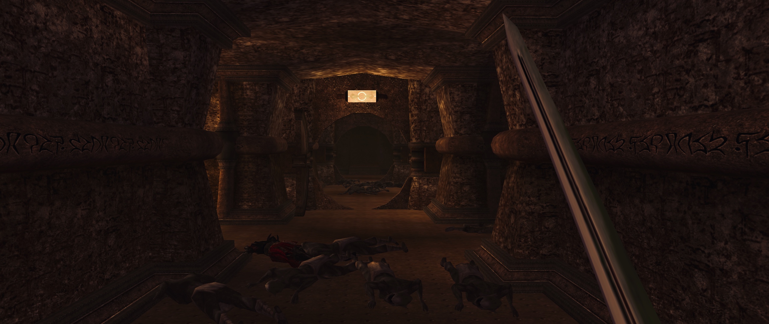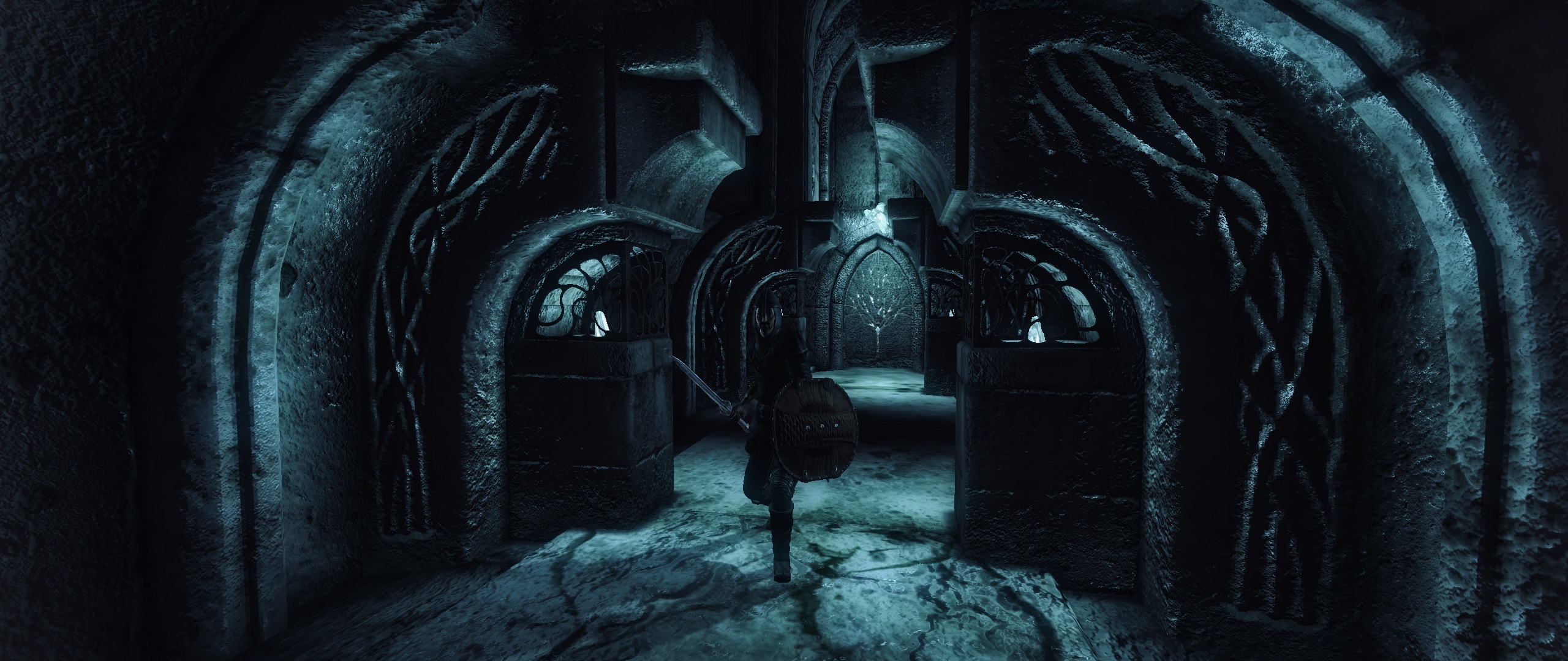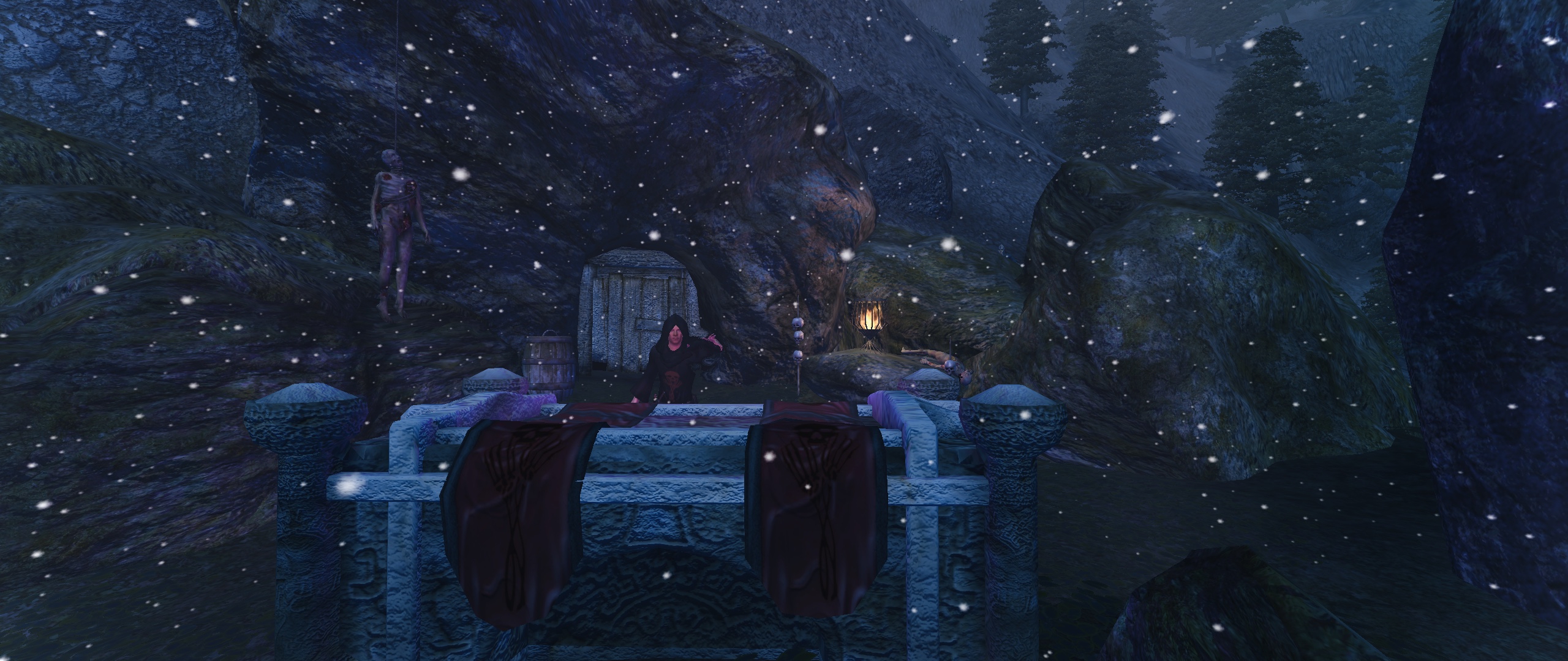 Несколько солдат погибли в ходе битвы - мы захоронили их рядом с телами павших разведчиков и стали осматриваться. Крепость кажется очень зловещей, несколько помещений представляют собой ритуальные залы с обилием ингридиентов и остатков человеческих тел, на нижнем уровне расположена тюрьма, где видимо эти скоты содержат свой скот. На верхних этажах распологается башня главного некроманта-альтмера, сторожевая башня и резиденция, которая ведет к подземному тоннелю. В тоннеле есть глубокая дыра с проходом внизу. Поскольку я не мог переместить своих солдат вниз вместе с собой (ну точнее это было бы крайне геморрно), пришлось спускаться самому. Дальше я охуел - проход открылся в подземный комплекс, по размерам примерно такой же, как часть, что наверху.