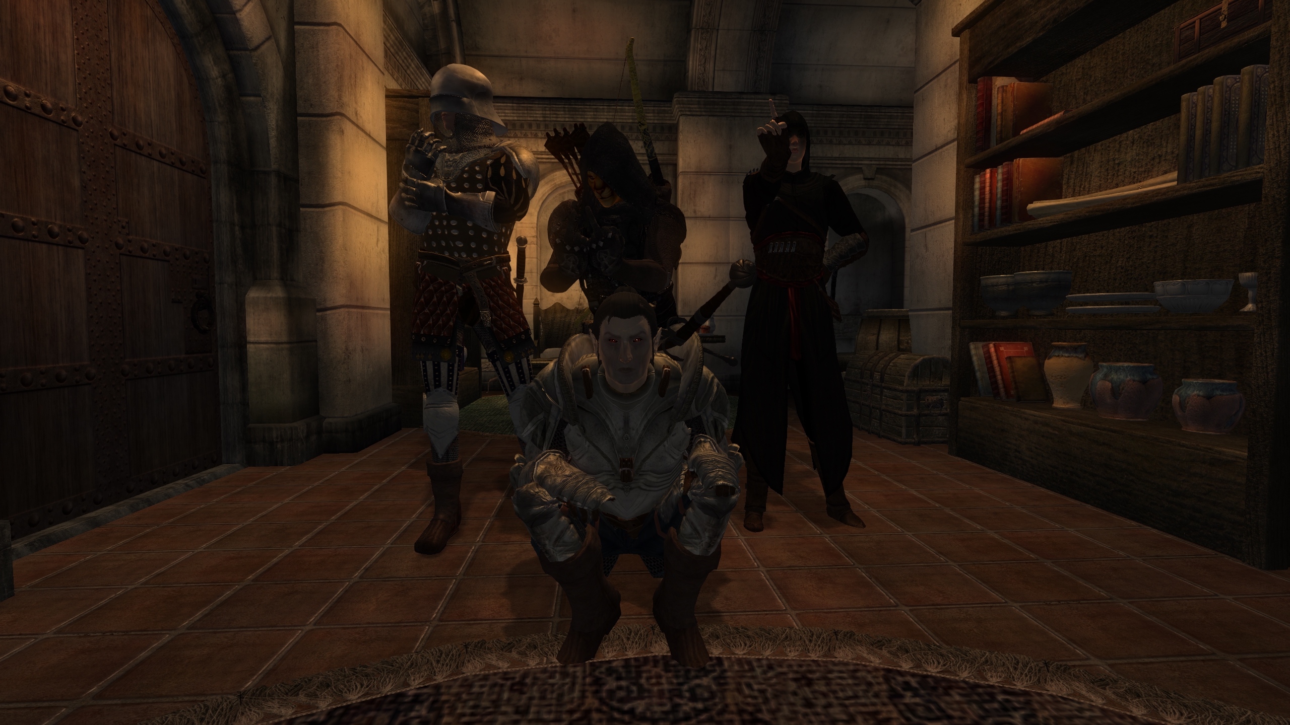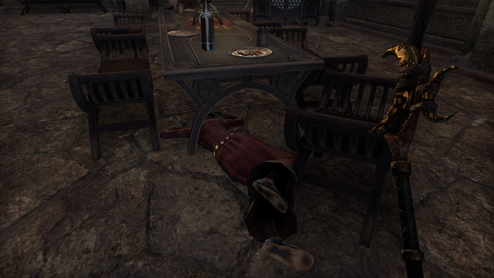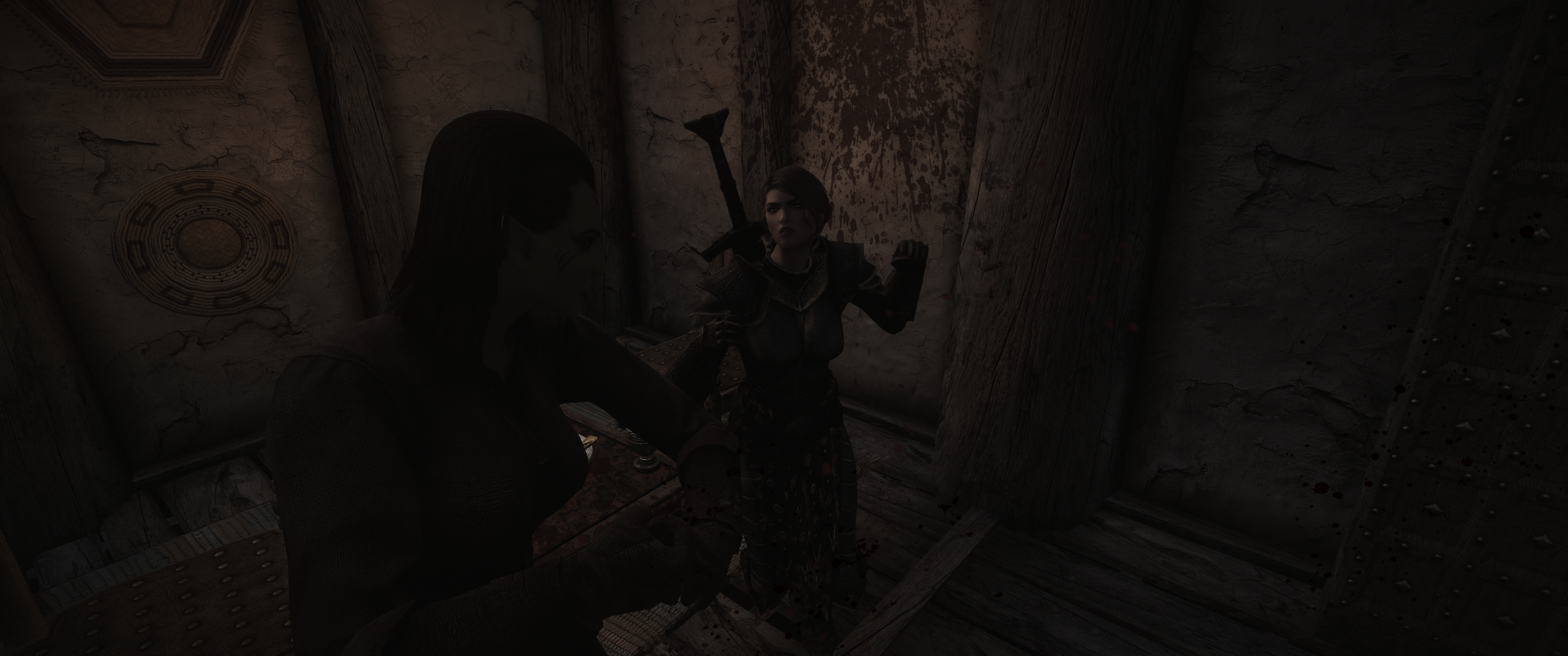 Зато СХ очень порадовал внезапной концовкой, когда появляется Ворин Дагот и говорит «Неревар малаца, горжусь тобой». Тронуло. Потом возвращался домой, почивал на лаврах, но словил некислое птср из-за смерти отряда. Встретился с верхушкой дома Редоран, принял почести и похвалу, написал письмо Гравиусу ну точнее слетал по-быстрому, чтобы узнать как там положняк изменился после смерти Дагот Ура, ну или их там имперцы уже добили. Поговорил с Вивеком, у него там тоже пара новых прикольных диалогов - в частности он спойлерит, что данмеры вернутся к поклонению даэдра, потому что смертным нужно во что-то верить, и он это одобряет (а еще до этого лично породнил Отступников с Храмом, как бы предвещая эти события). Мир внутри игры меняется - пришла новость, что в доме Редоран наконец выбрали нового маршала Защитников Веры на замену Болвану Вениму, вменяемого мужика из альд’рунского храма. А я уже хотел костыльно туда какого-нибудь своего балбеса поставить, чтобы свято место пусто не было. В качестве клифхэнгера приехал к себе в поместье, лег отдохнуть и проснулся ночью от «громкого шума».