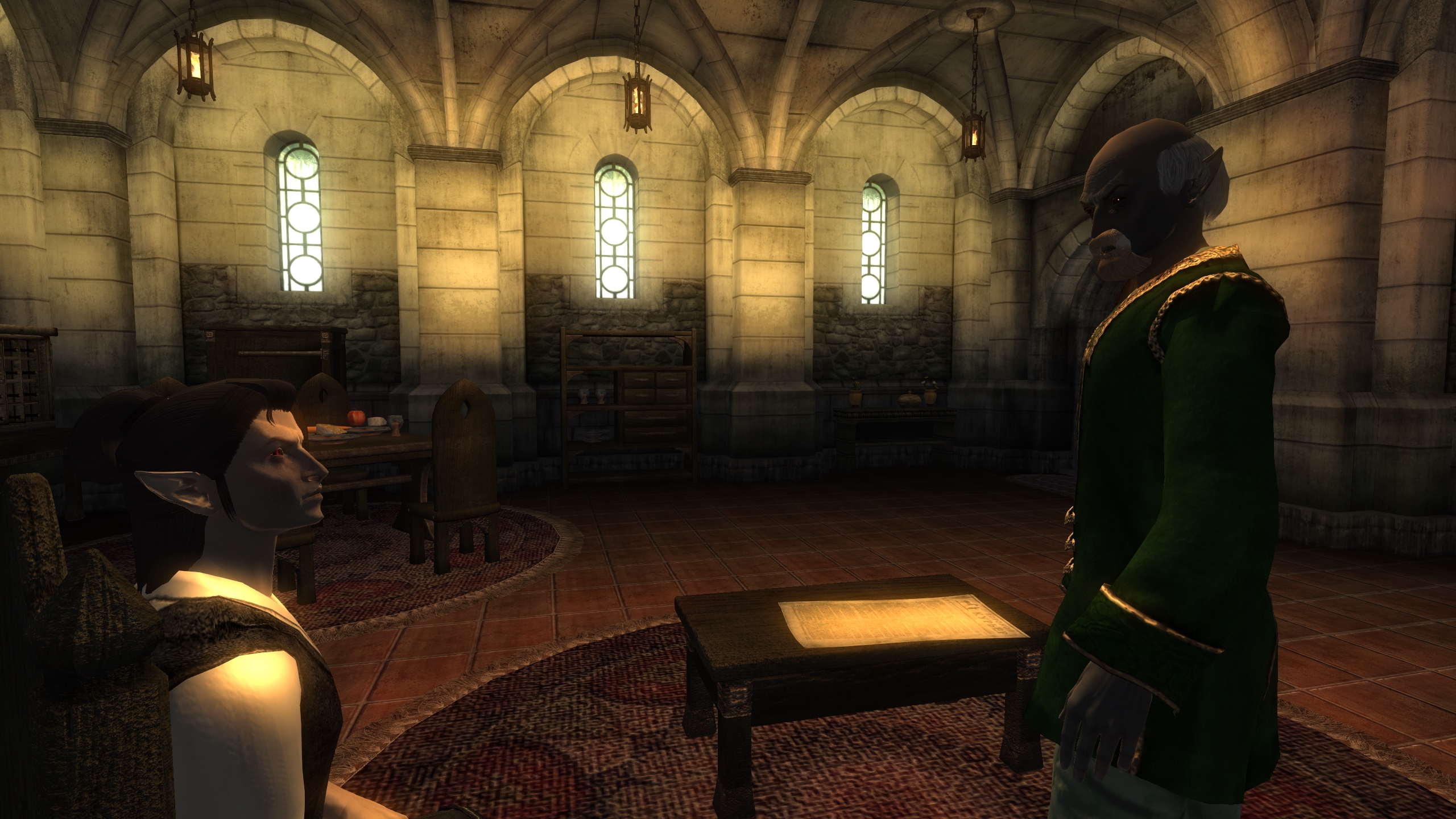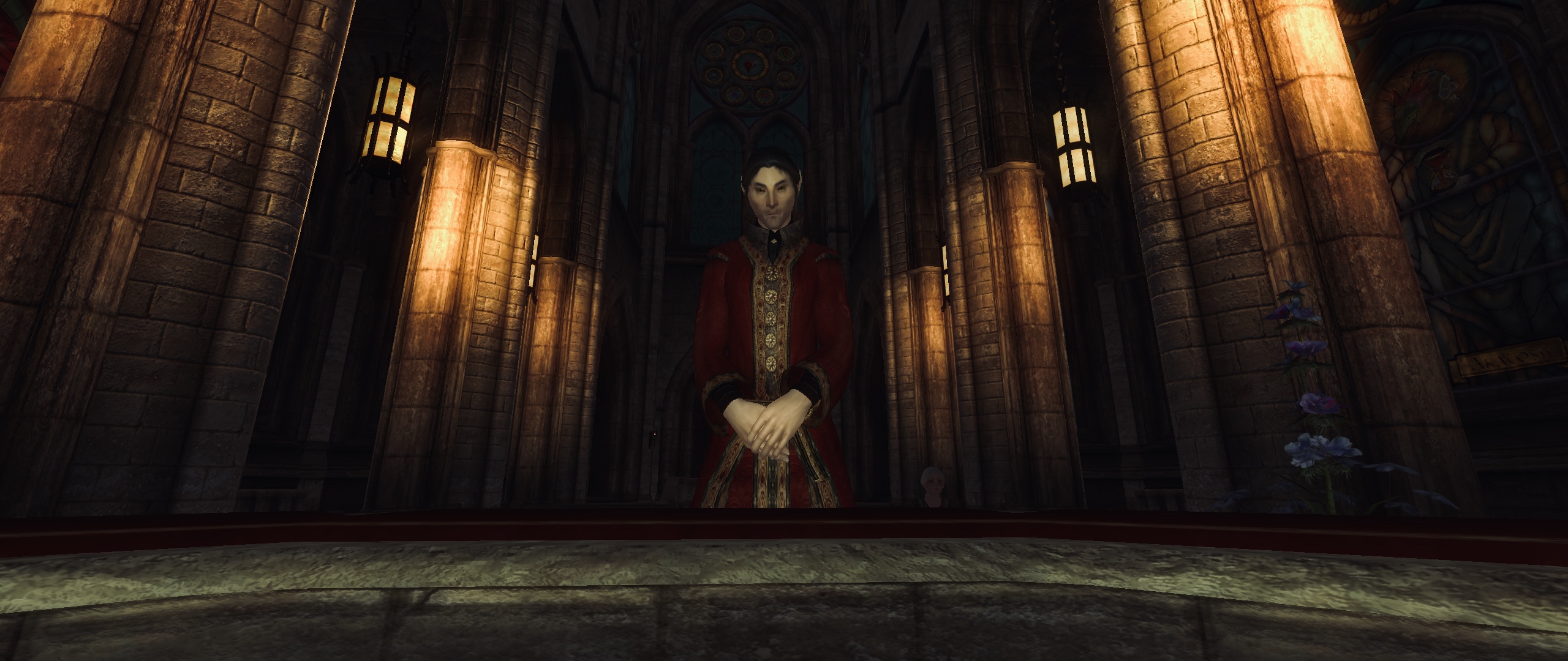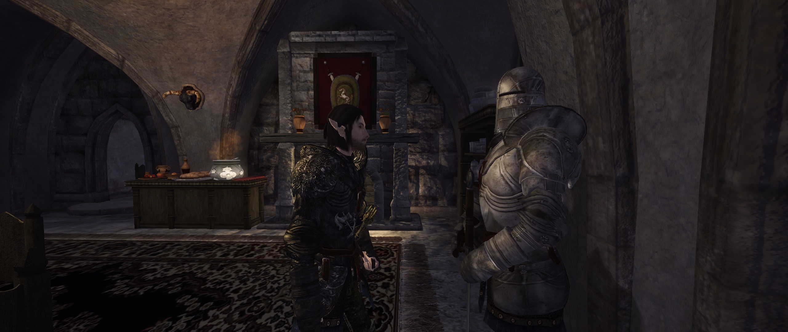 Начинается Трибунал почти также, как в ванилле, с одной разницей. Квесты за Хелсета я выполнять не мог. На момент старта аддона у меня был высокий ранг в Храме, и формально я был изгнан из Легиона, поэтому хелсетовский бодигард-имерец меня просто отпульнул со словами «жрец, так пиздуй в капеллу, тут тебе делать нечего». Хелсет во дворце не спавнится до самого конца, сычует в бункере на измене. Сюжет за Альму практически такой же до момента, когда тебя посылают убить Ее Руку. Дальше в дневнике появляется запись, типа надо бы рассказать все Вивеку о том, что Альма поехала кукухой.