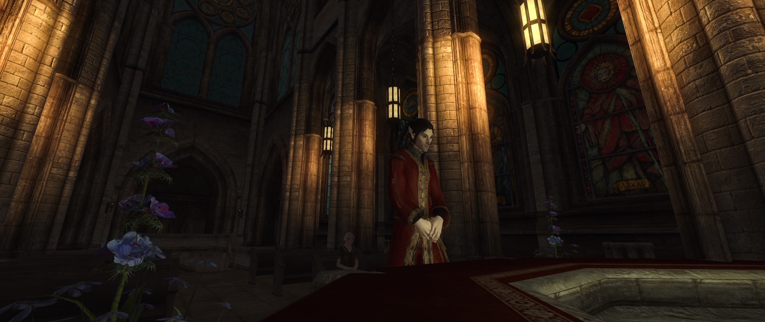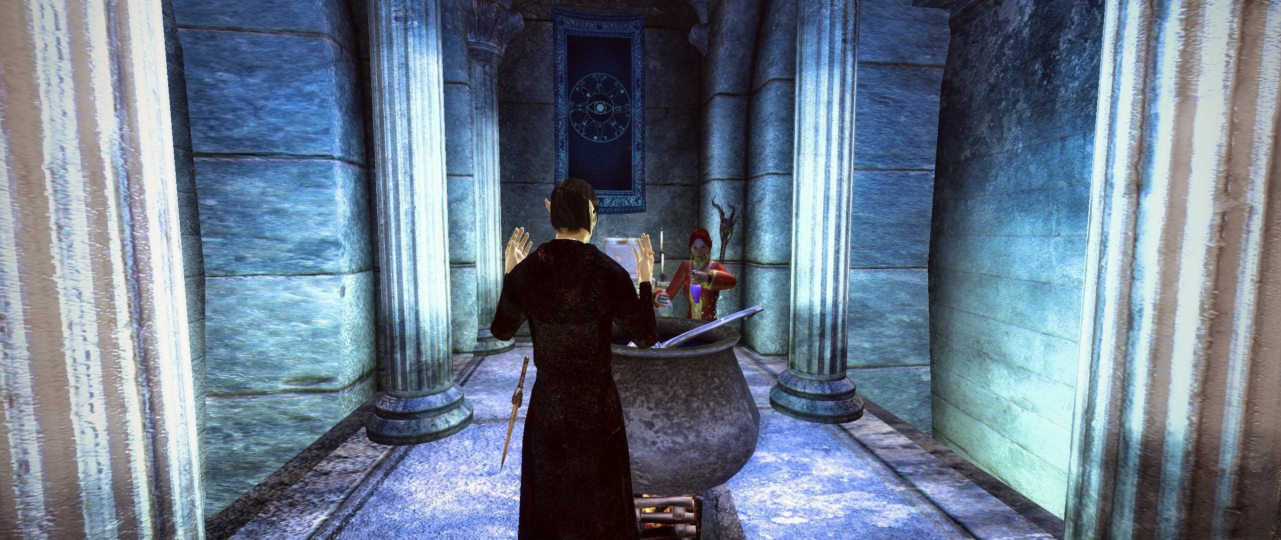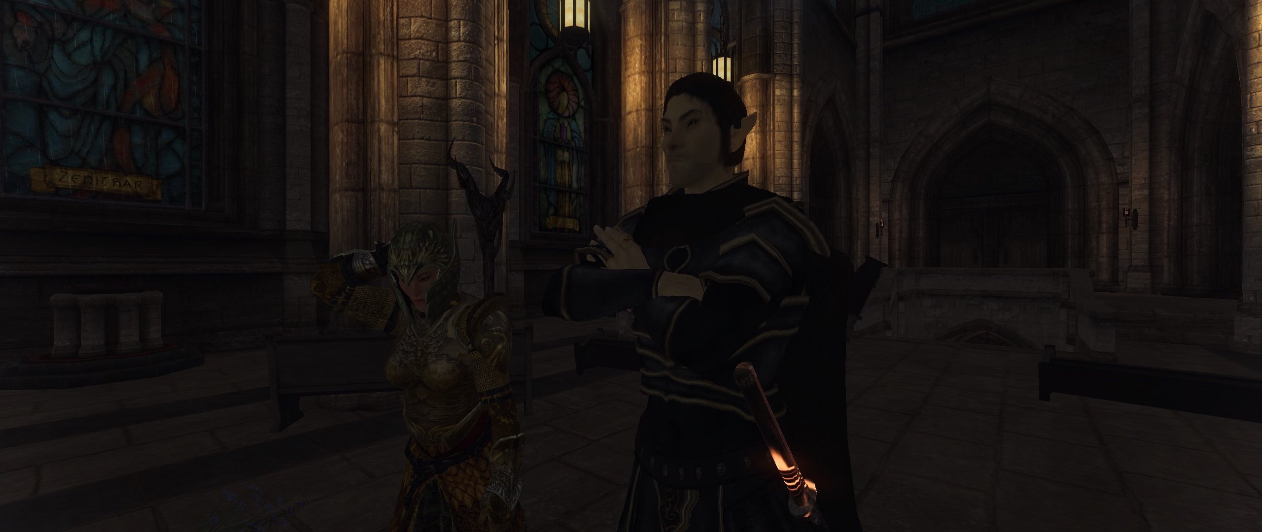 Начинается Трибунал почти также, как в ванилле, с одной разницей. Квесты за Хелсета я выполнять не мог. На момент старта аддона у меня был высокий ранг в Храме, и формально я был изгнан из Легиона, поэтому хелсетовский бодигард-имерец меня просто отпульнул со словами «жрец, так пиздуй в капеллу, тут тебе делать нечего». Хелсет во дворце не спавнится до самого конца, сычует в бункере на измене. Сюжет за Альму практически такой же до момента, когда тебя посылают убить Ее Руку. Дальше в дневнике появляется запись, типа надо бы рассказать все Вивеку о том, что Альма поехала кукухой.