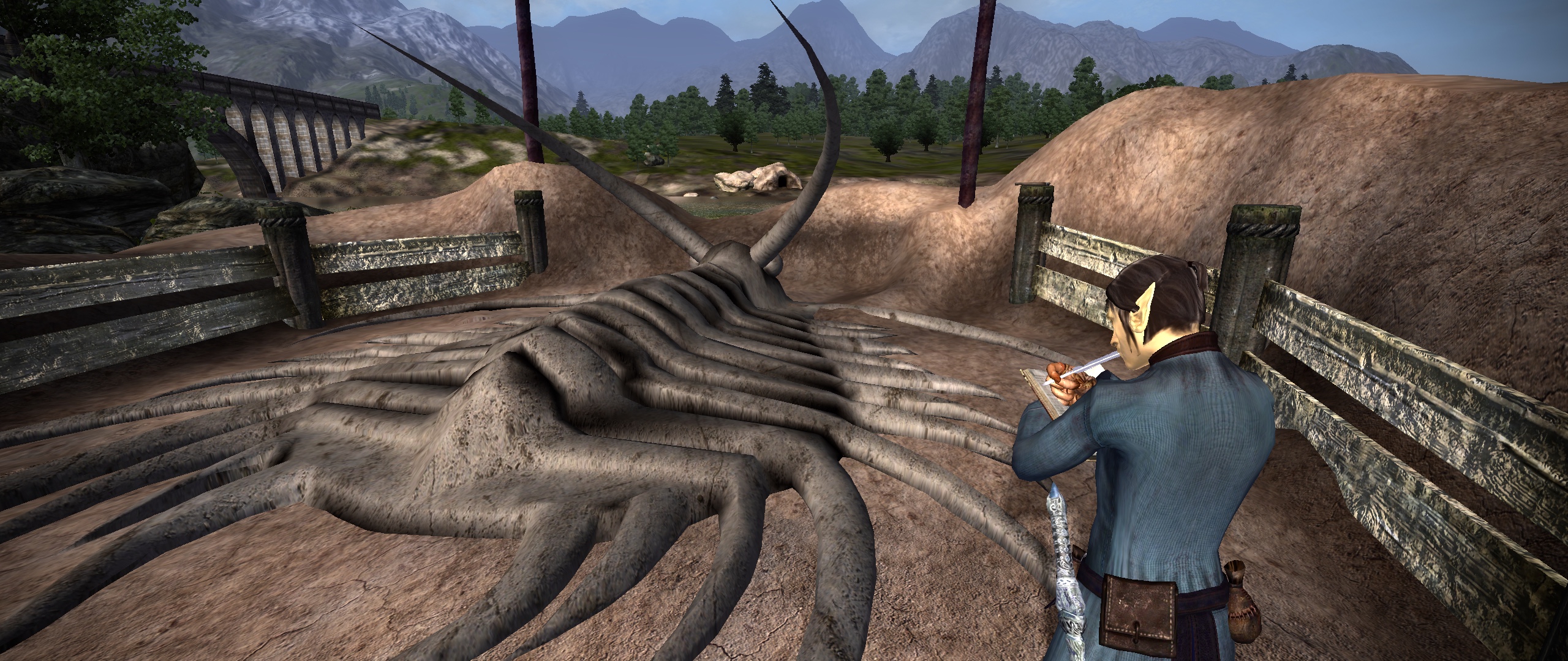 По характеру работы хотел этого перса подвести к Хранителям границ, привык мотаться в ебеня и обратно с докладом, и у них как раз командир - Сарети. Но кошмары все перевернули, преисполнился откровением и наметился в Ложу верунов. Заодно вступил и совершил паломничества (лучше уж с Трибуналом против Дагота, они хоть как-то смогут защитить), хотя до этого не очень любил верунов, сейчас так сказать, сам уверовал. Однако и тут все пошло по пизде: заглянул к Атину Сарети за советом (ну реально, самый ламповый и мудрый редоранец), а он такой: Веним гнилыч и похитил моего сына. В процессе саботажа планов Венима (а он маршал Верунов, скрепный мудак) здраво рассудил, что мне туда вход теперь закрыт. Осталось идти к Мастерам войны, и меня сперва оттуда отпульнули, потому что недостаточно крут для крутых парней, поэтому дальше последовал монтаж кадров усердных тренировок Балианда. Как раз хотел сделать персонажа таким мастером оружия, воином, который использует все что у него есть, чтобы выжить. Все-таки поступил и участвовал в набегах на форпосты Телванни, и ебать это было эпично, сражаться с другими редоранцами бок о бок. Помню, как зажали солдат Телванни в коридоре с двух сторон, и я с фланга колол их пикой, когда они отступали.