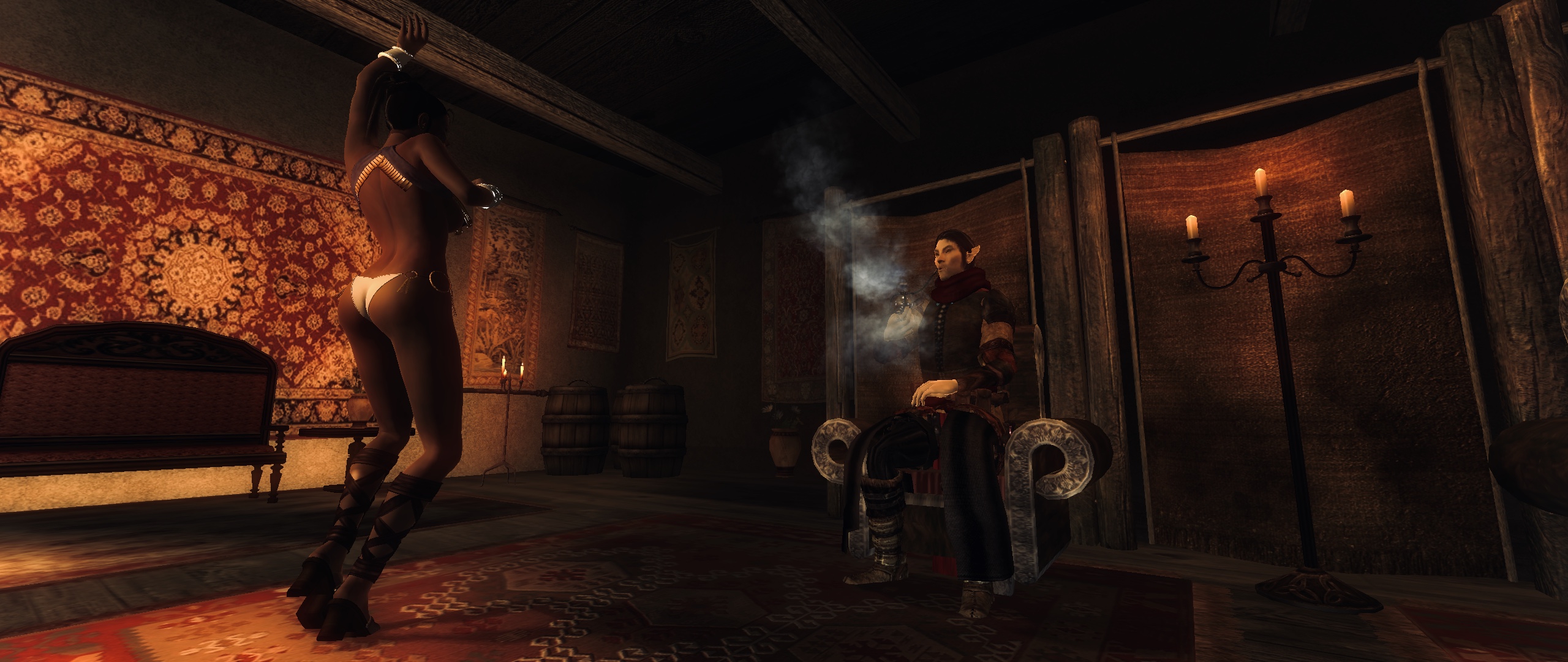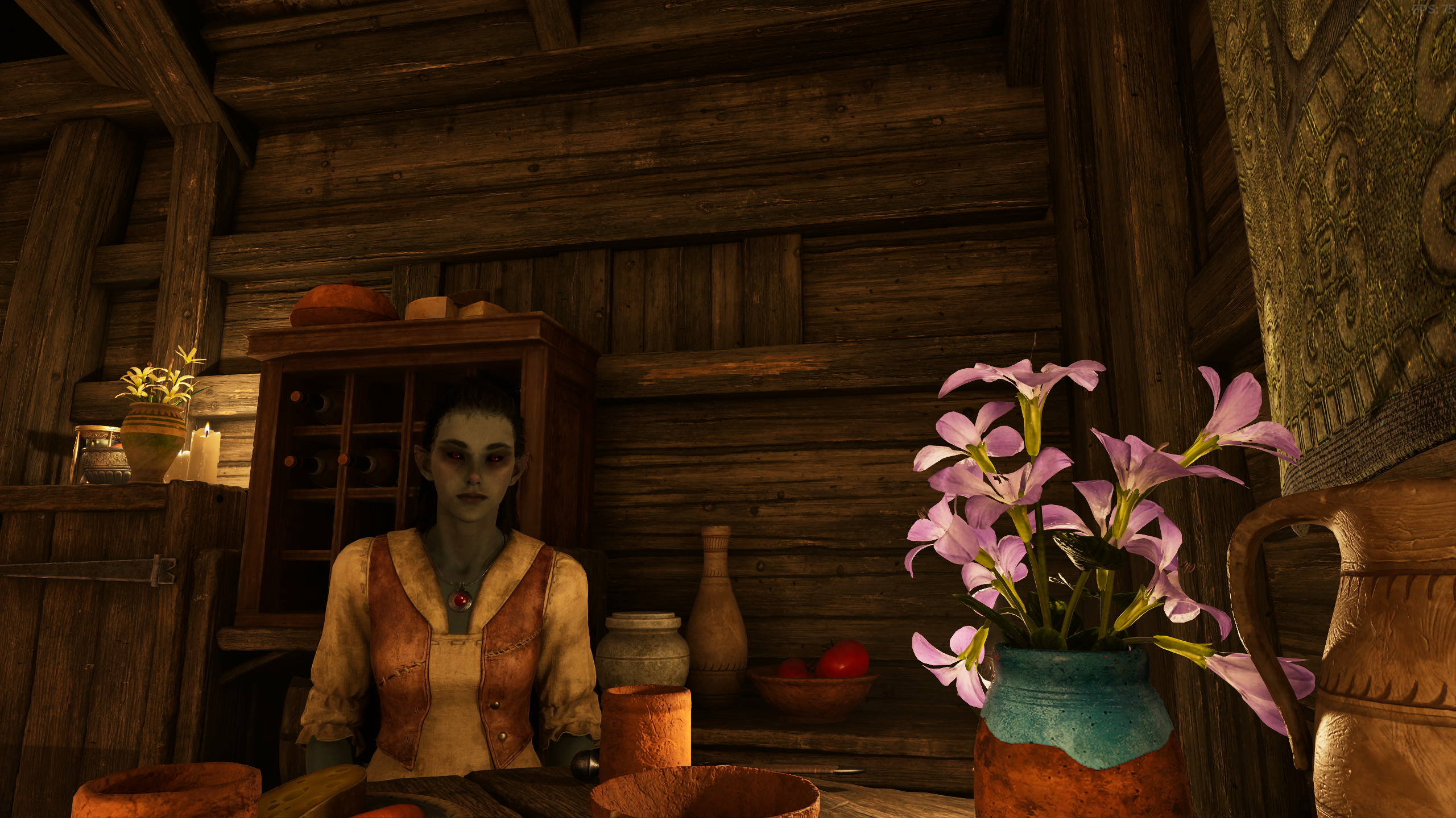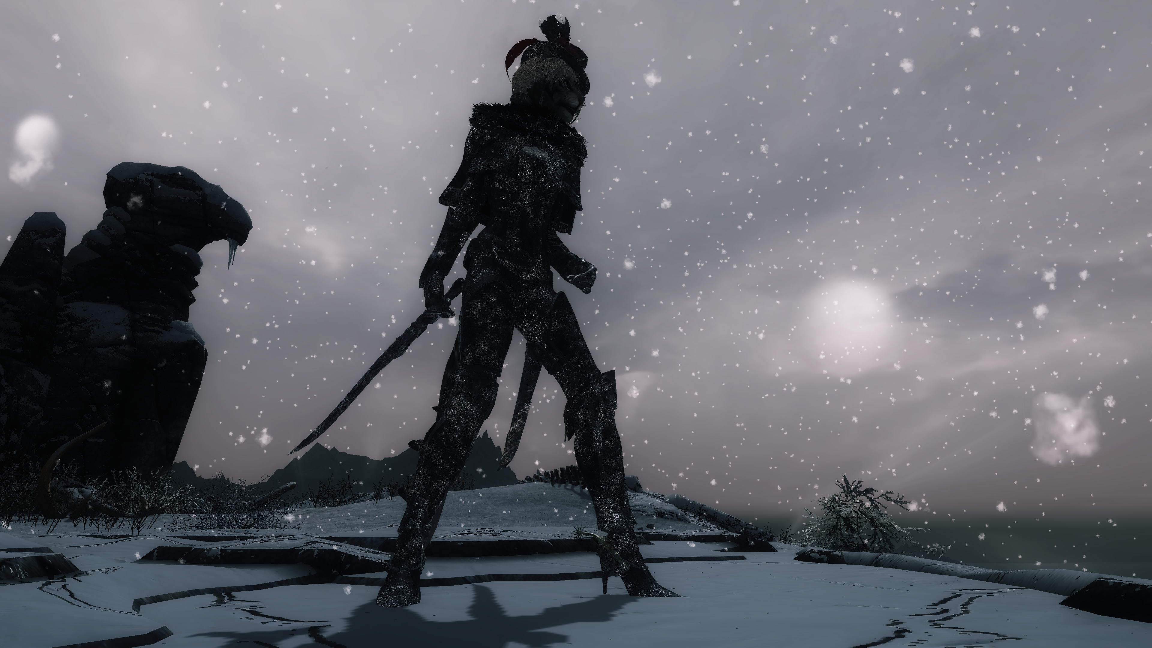 Зима пришла, самое время вернуться в Скайрим. Слегка причесал свою сборочку, побегал-потестил-поаутировал за рыжуху-имперку, но решил всё-таки начать с нуля за нового персонажа. Во время тестового забега вспомнил давнишнюю просьбу анона из этого (или даже предыдущего?) треда -- тот хотел увидеть Юнию в красивом платье. Она не из тех, кто любит наряжаться, но кое-что +- подходящее перерыв кучу файлопомоек я всё же нашёл. Надеюсь, анон, ты ещё тут и увидишь это, хотя я конечно припозднился с твоим реквестом на ~год, но всё же.