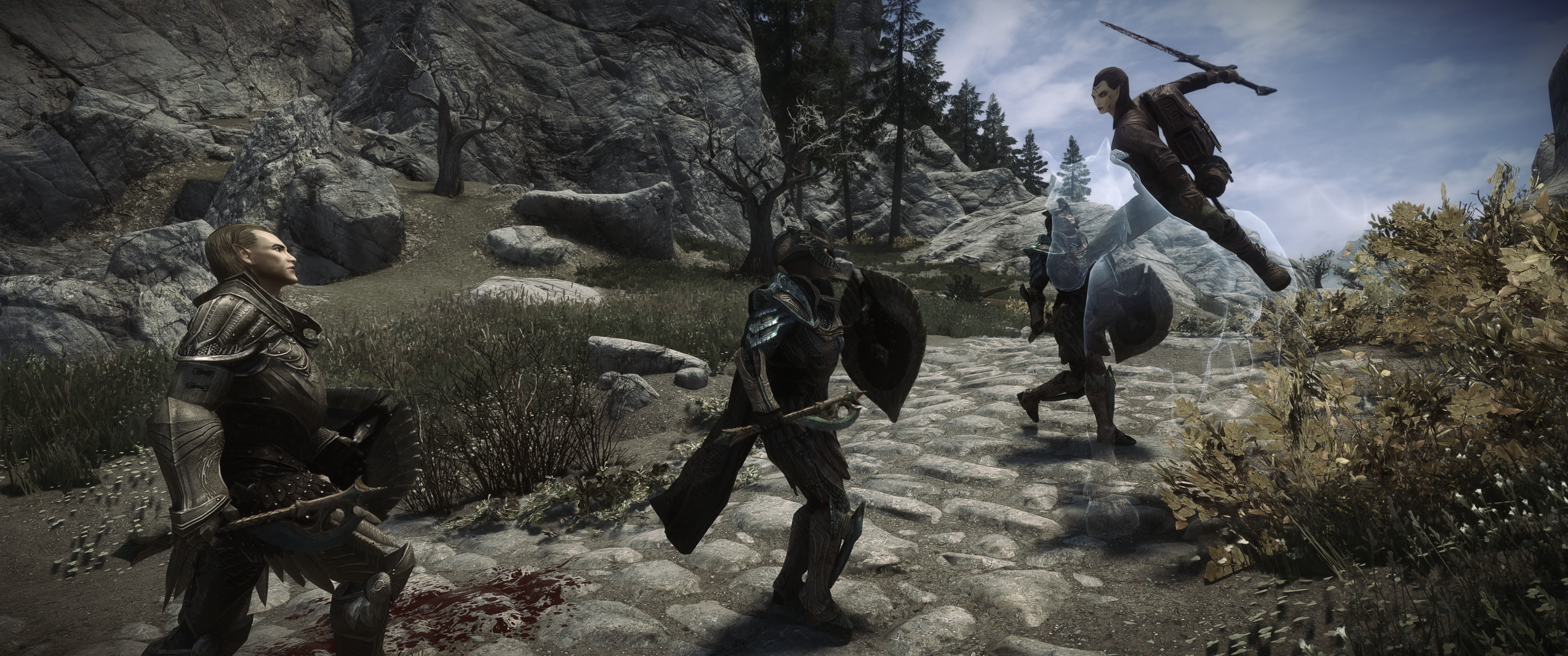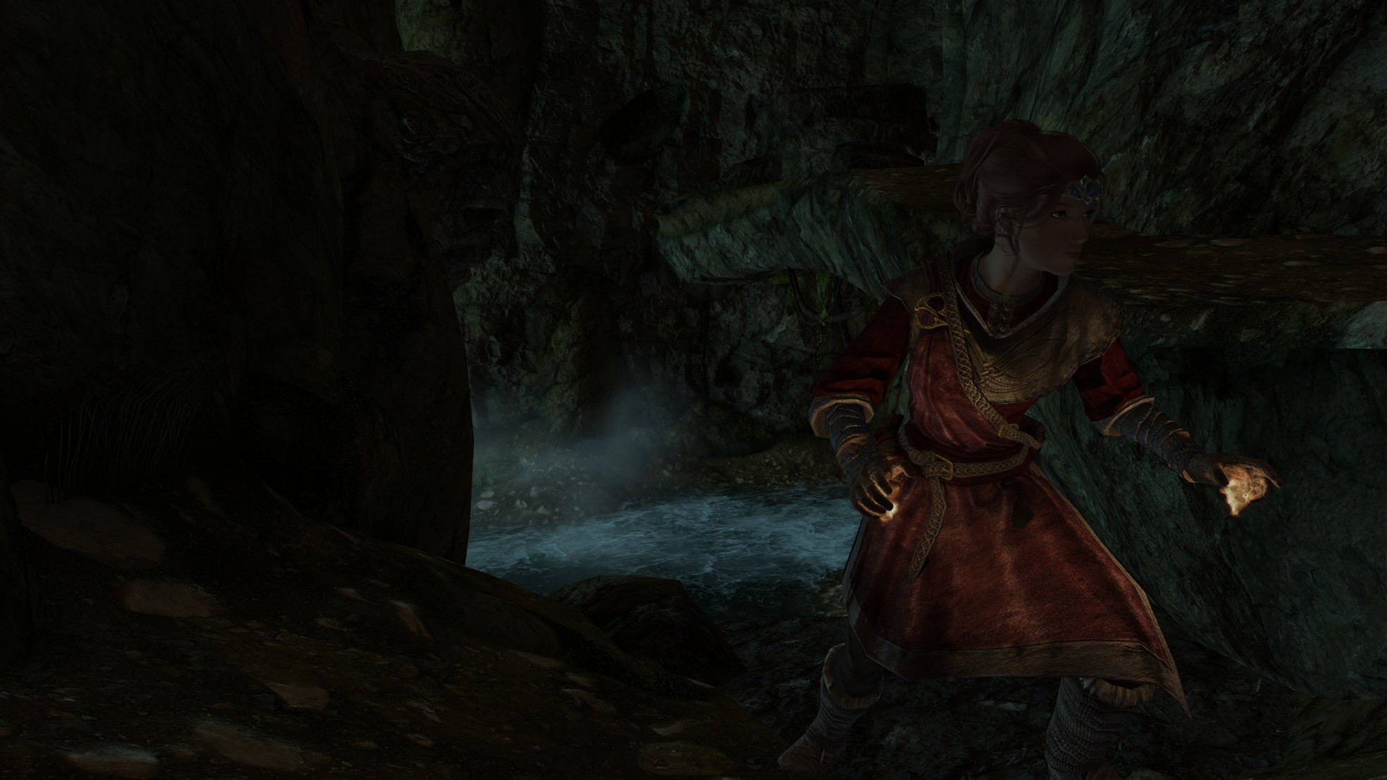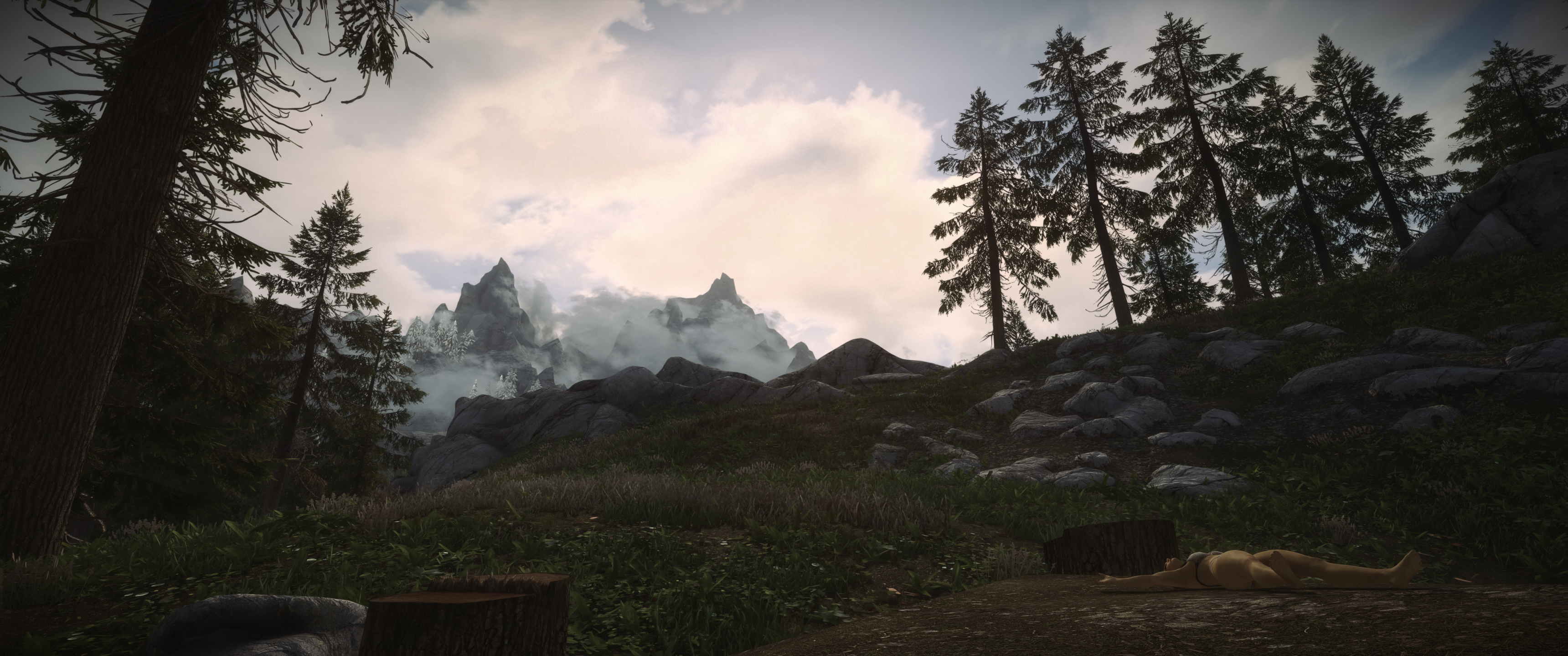 Бампецкий сильнонезависимой бретонкой. Все-таки здорово делать длительные перерывы в этой игре, потом запускаешь ее и ощущение что ты вообще это все впервые видишь. Вкотился в магию разрушения и заодно смотрю новые спеллы колдовства из модика. Брожу по Скайриму, аутирую и делаю скриншотики. Вступил в Коллегию, поделал некоторые квестики, теперь таскаю туда собранные книги. Какое поместье вмещает в себя максимальное количество книжных полок, или они все одинаковые? Коллегия посылает в Мзулфт, но чет боюсь, что мне там сделают если не больно, то как минимум очень неприятно. Пока живу в Солитьюде и брожу по его окрестностям. Очень доставляет природа в этих краях.