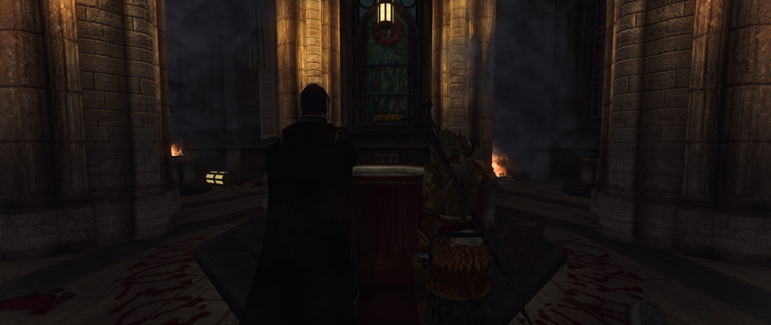 Двое Ординаторов оказались настолько сильными противниками, что я вспомнил начало своего прохождения и снова отыграл прагматичного бойца с абузами ИИ морровских неписей, прыгал от них по всему залу как ебанутый, уворачивался и старался застопить второго (ну в смысле подножку там ему поставить, кинуть), чтобы сражаться с ними по очереди. После долгого потного файта с раздолбаннами доспехами я выхожу из собора и обнаруживаю, что Альма захватила город, и теперь за тобой бегают все Ординаторы Морнхолда. Часть районов заблокирована барьером Альмы, шаг собра - и на тебя бежит озверевший фанатик с табельным оружием, запасы-припасы - все. Ну и что я делаю? Цепляю на себя куски доспехов Ее Рук, пробиваюсь к алтарю АльмСиВи, чтобы восстановить силу, закупаюсь зельями у целителя и начинаю городскую герилью, один против всех.