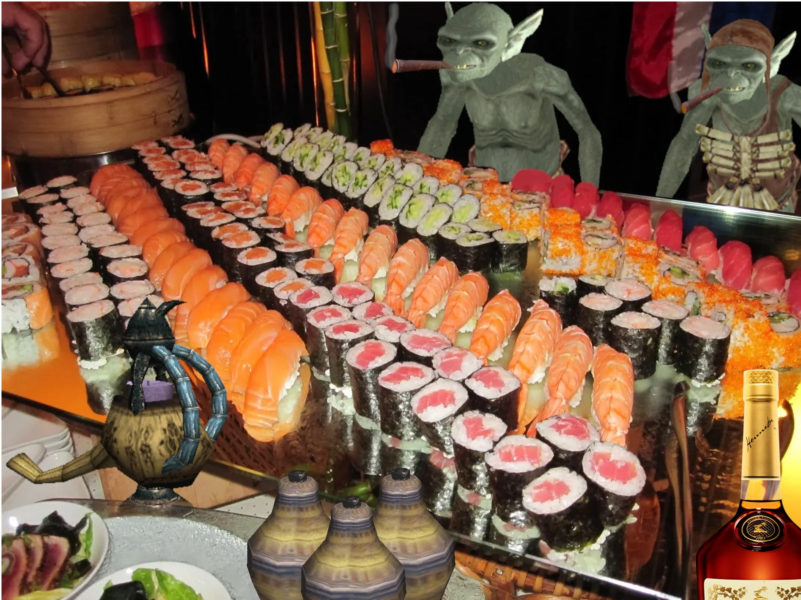 И тут дверь с грохотом распахнулась, впустив внутрь кубарем катящегося пьяного Ульфрика Буревестника. Взгляд Ульфрика сразу зацепился за пятилитровую сиську багбира, стоящую на йопкином столе. Он окинул ее томным, вожделеющим взглядом, затем медленно снял портки, отступил на шаг, разбежался и, издав рычание, в котором слышались отголоски древнего драконьего языка, с криком, напоминающим — «Глянь, что могу!», — прыгнул на ту самую сиську, заглотив ее без труда...